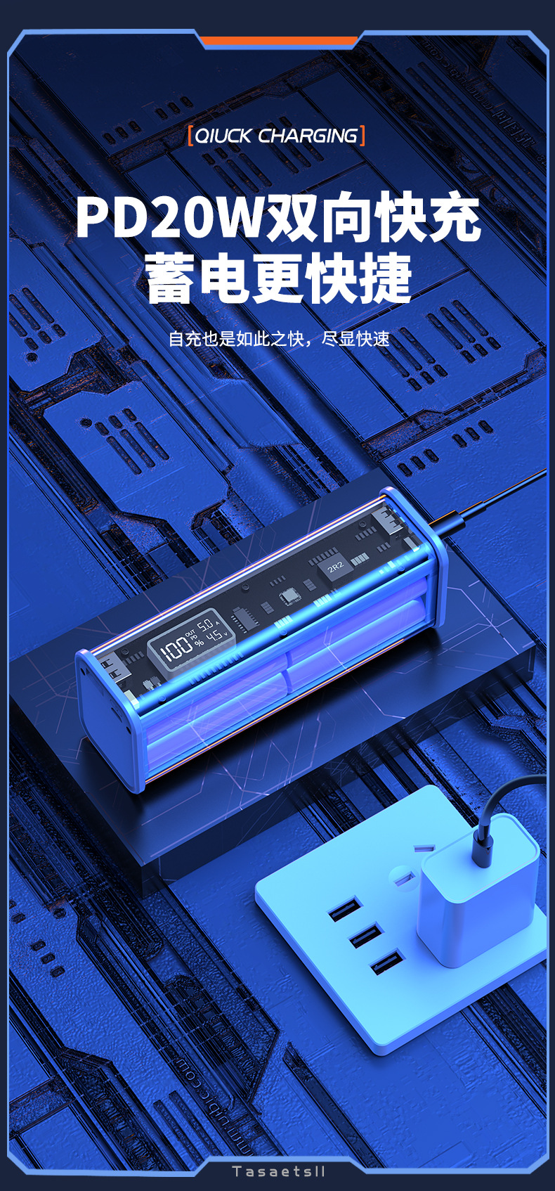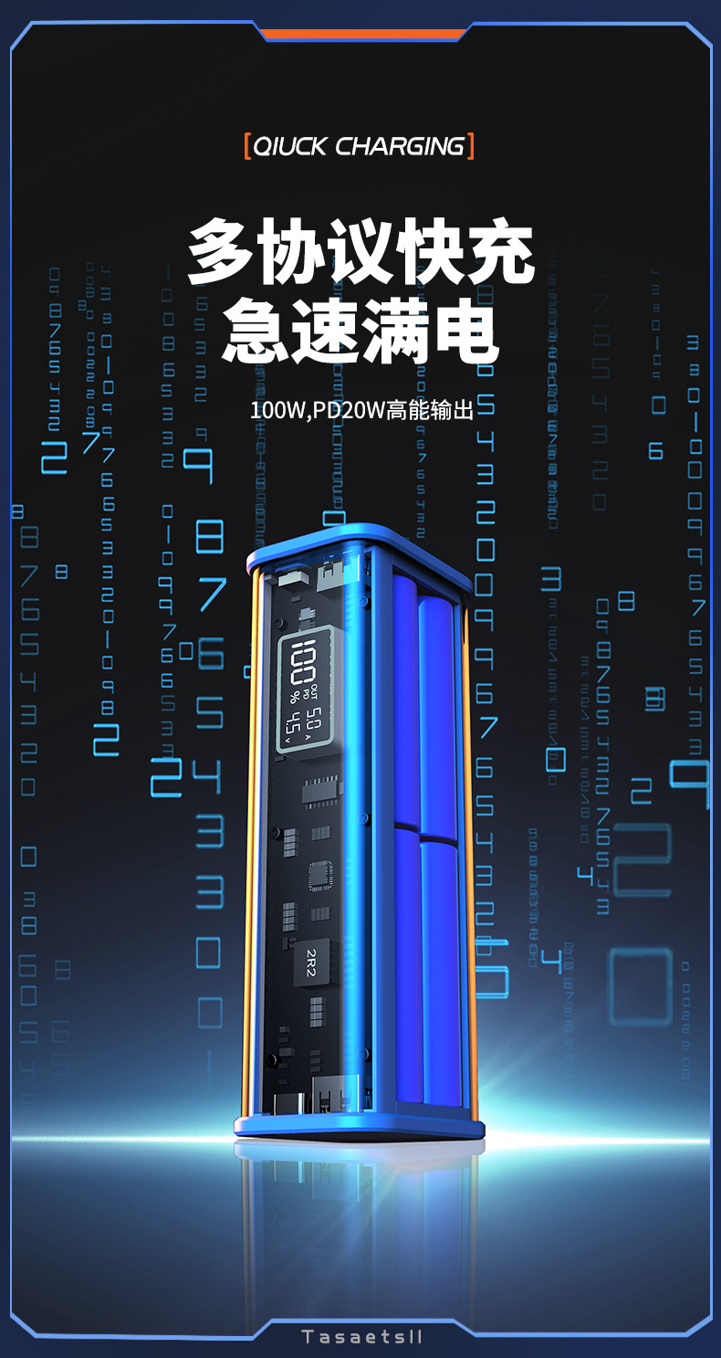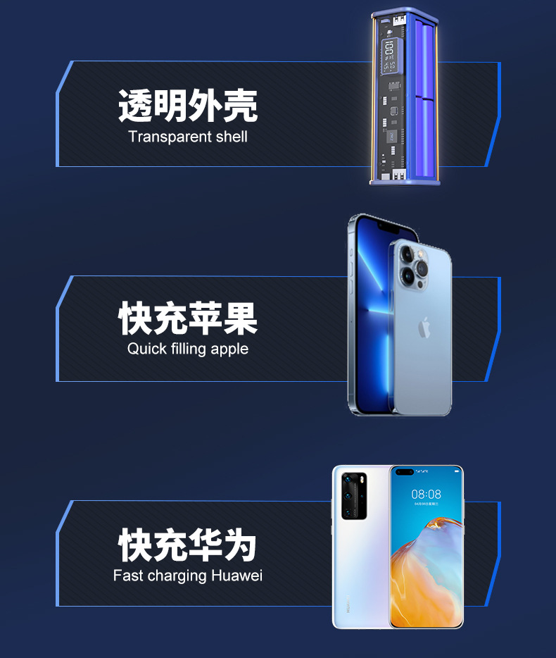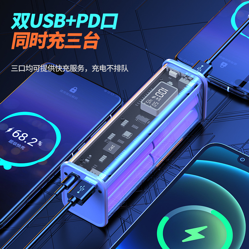 新款PD快充透明移动电源20000毫安充电宝礼品定 制logo充电宝套料