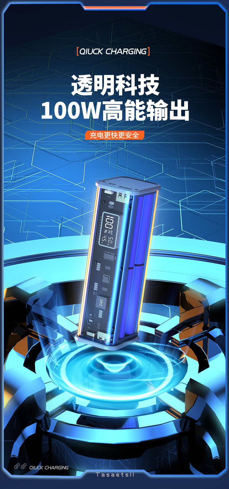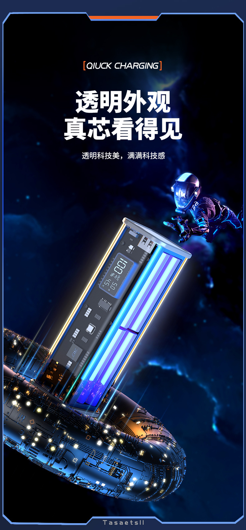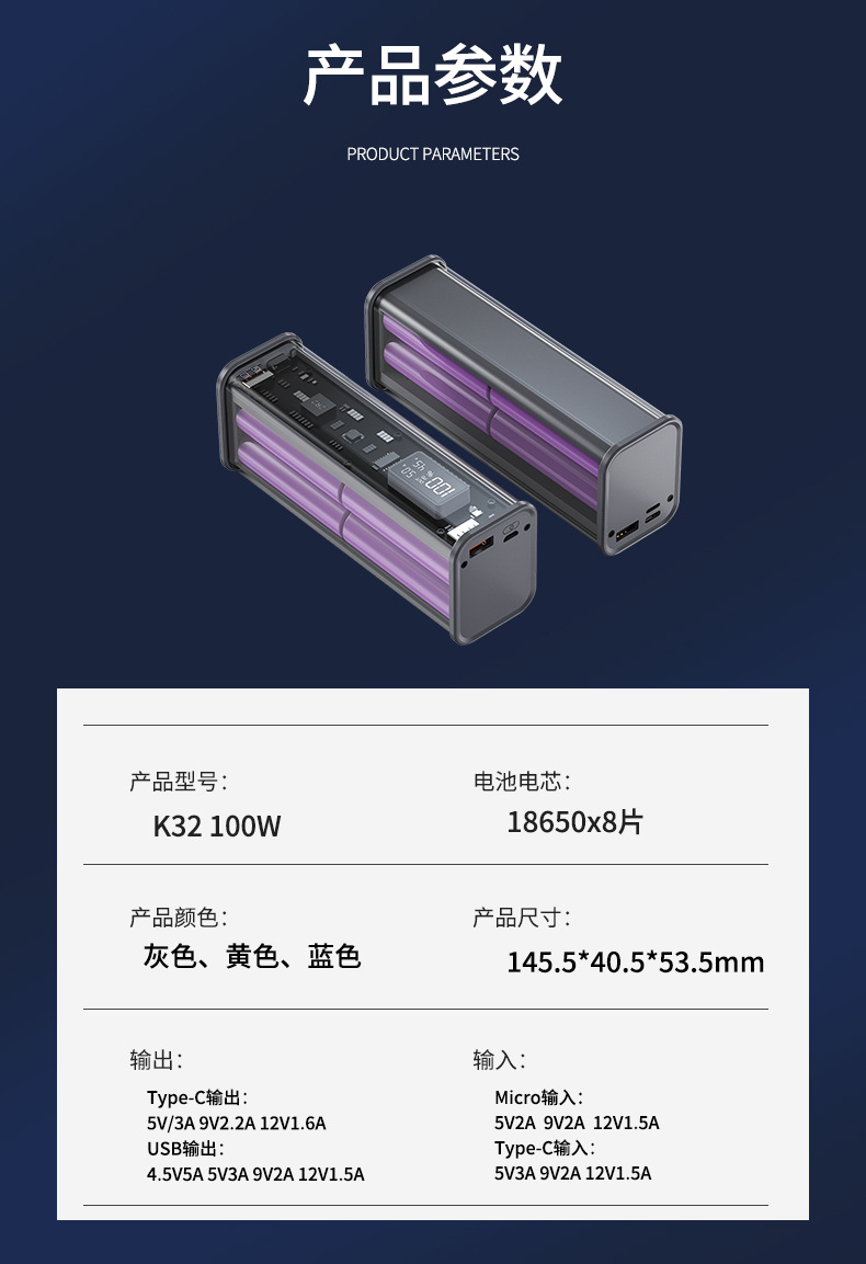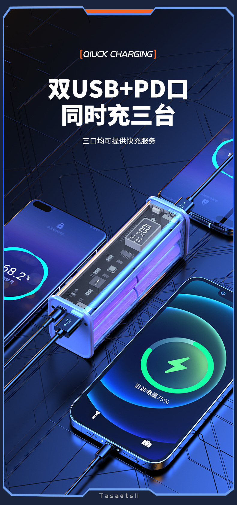 新款PD快充透明移动电源20000毫安充电宝礼品定 制logo充电宝套料