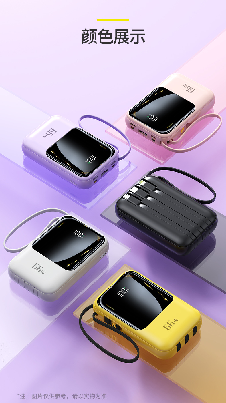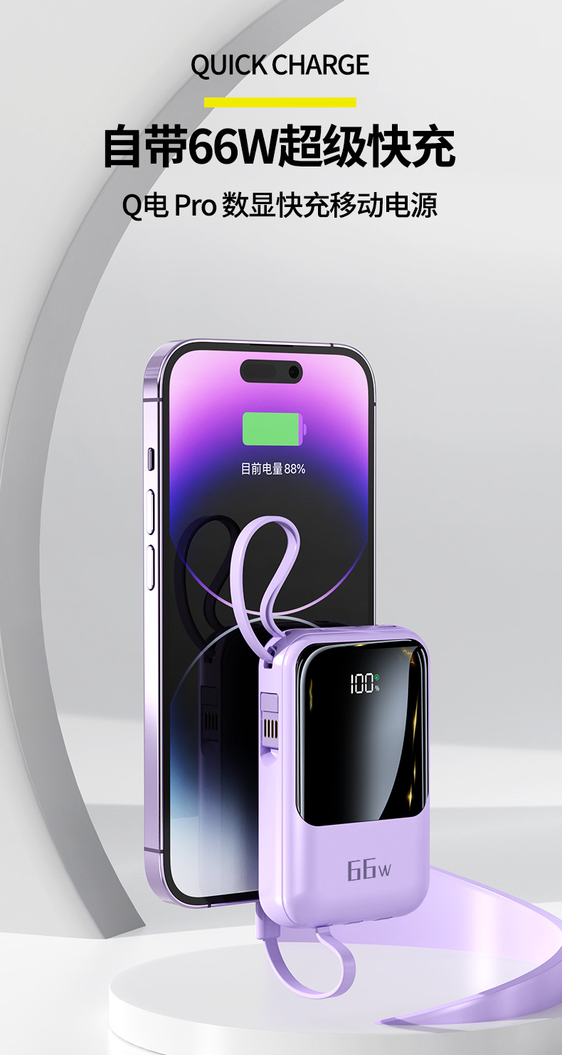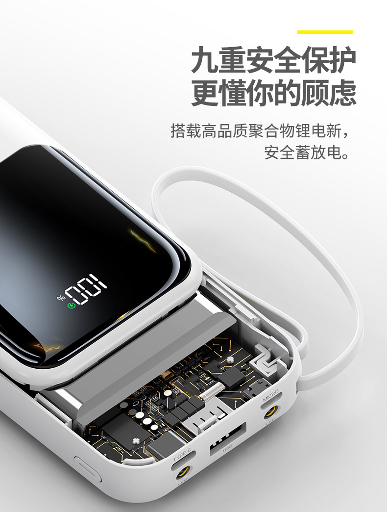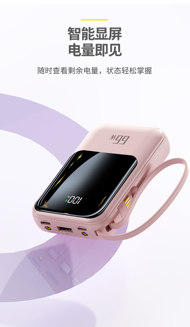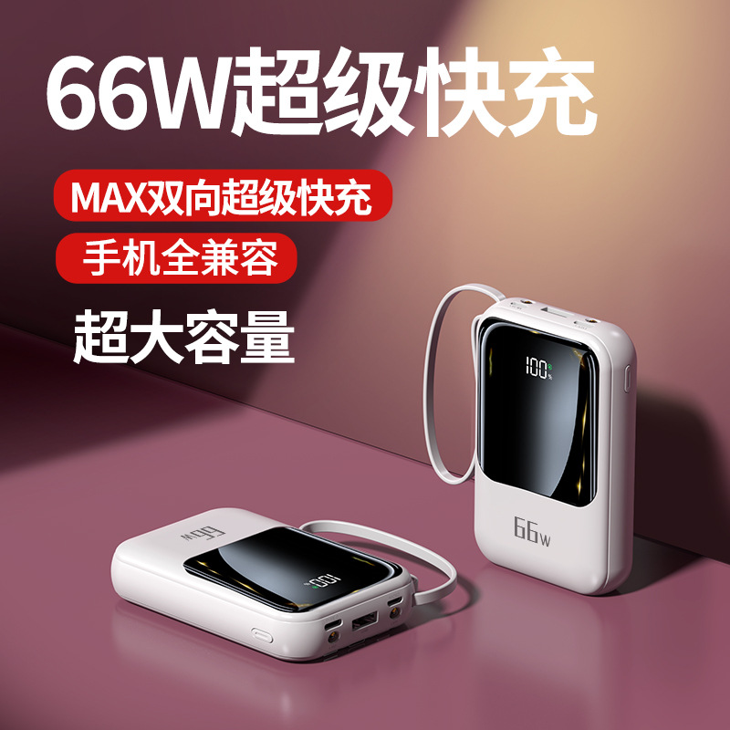 新款自带线超级快充充电宝20000毫安大容量礼品印制logo移动电源