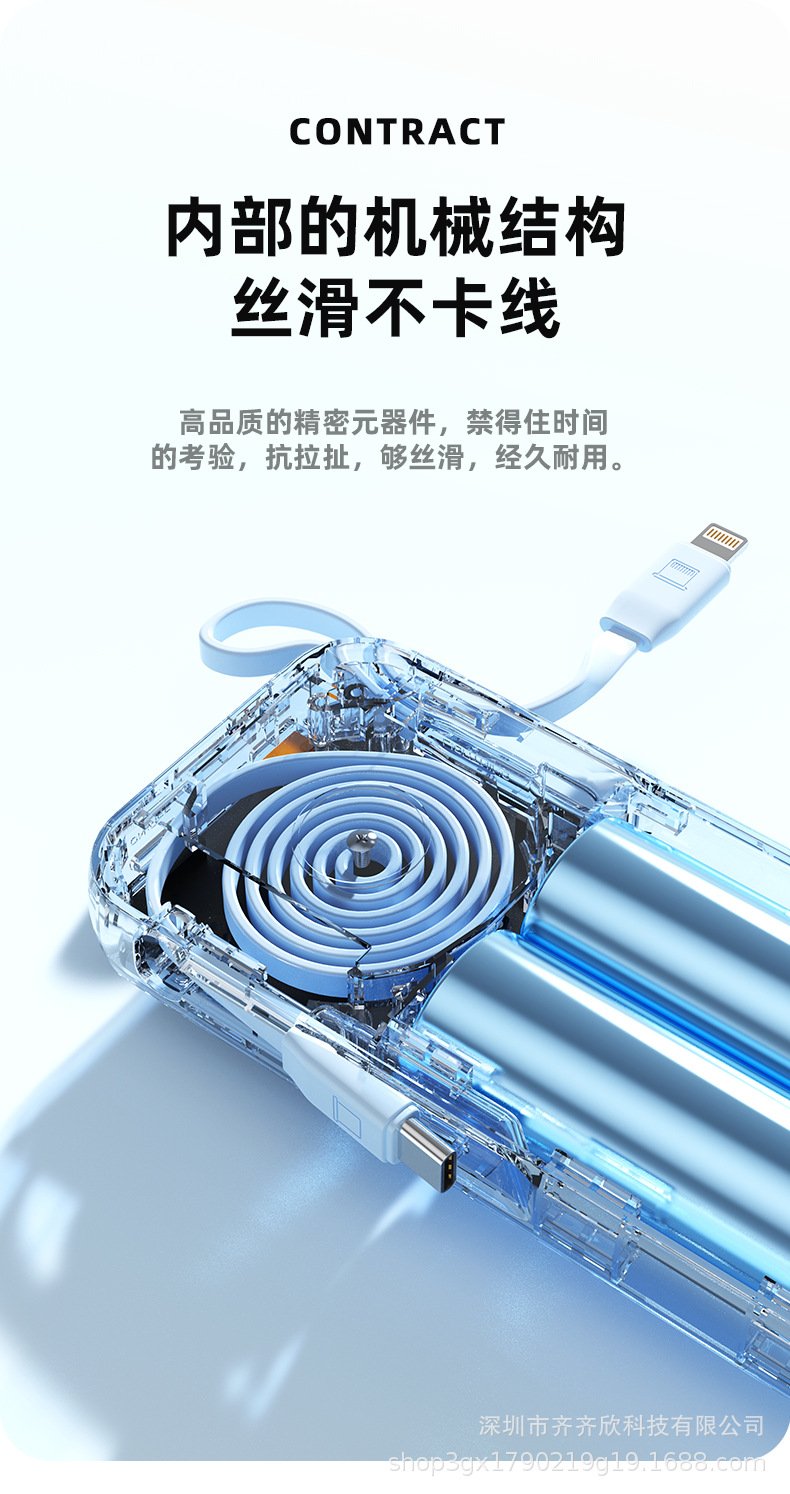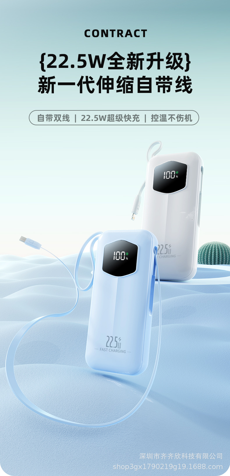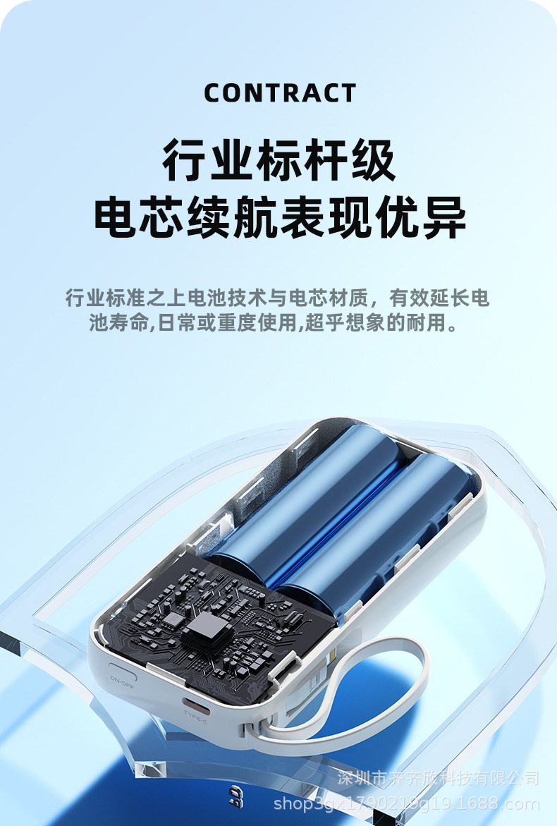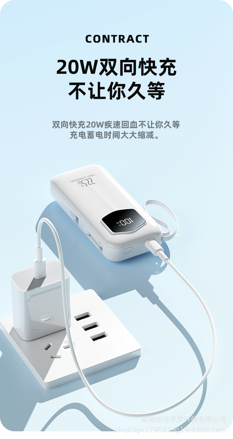 跨境新款伸缩自带线10000毫安充电宝PD超级快充移动电源礼品定 制