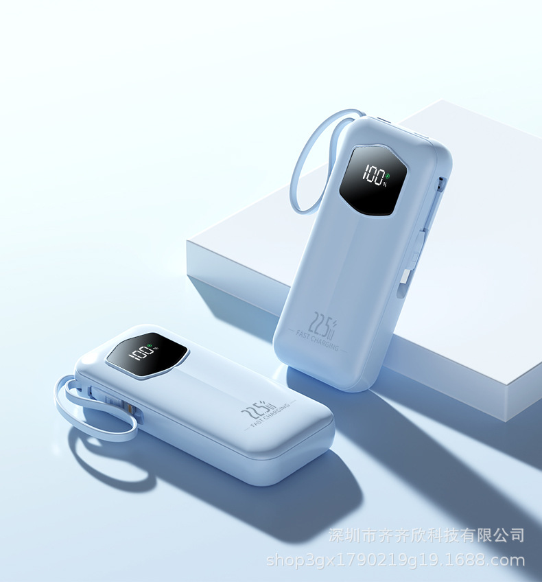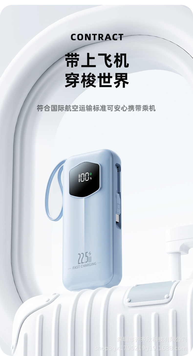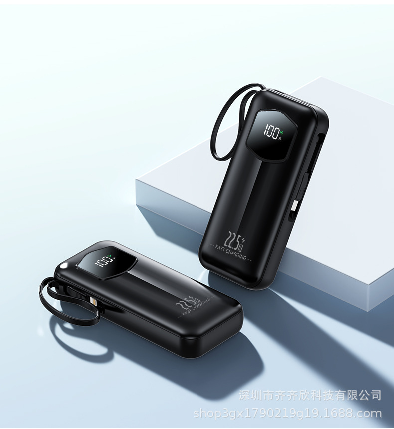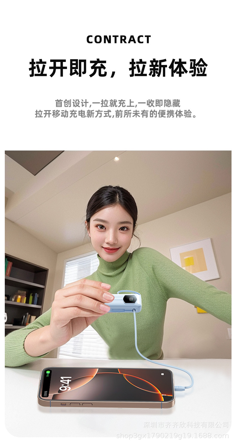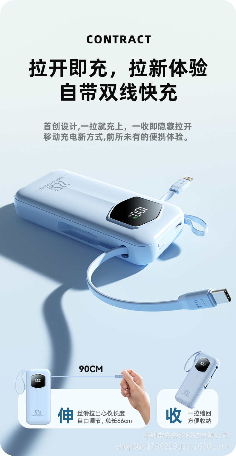 跨境新款伸缩自带线10000毫安充电宝PD超级快充移动电源礼品定 制