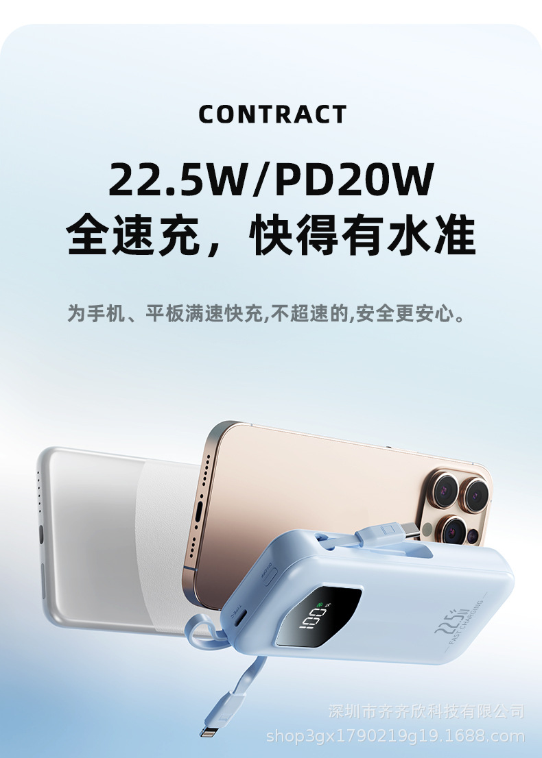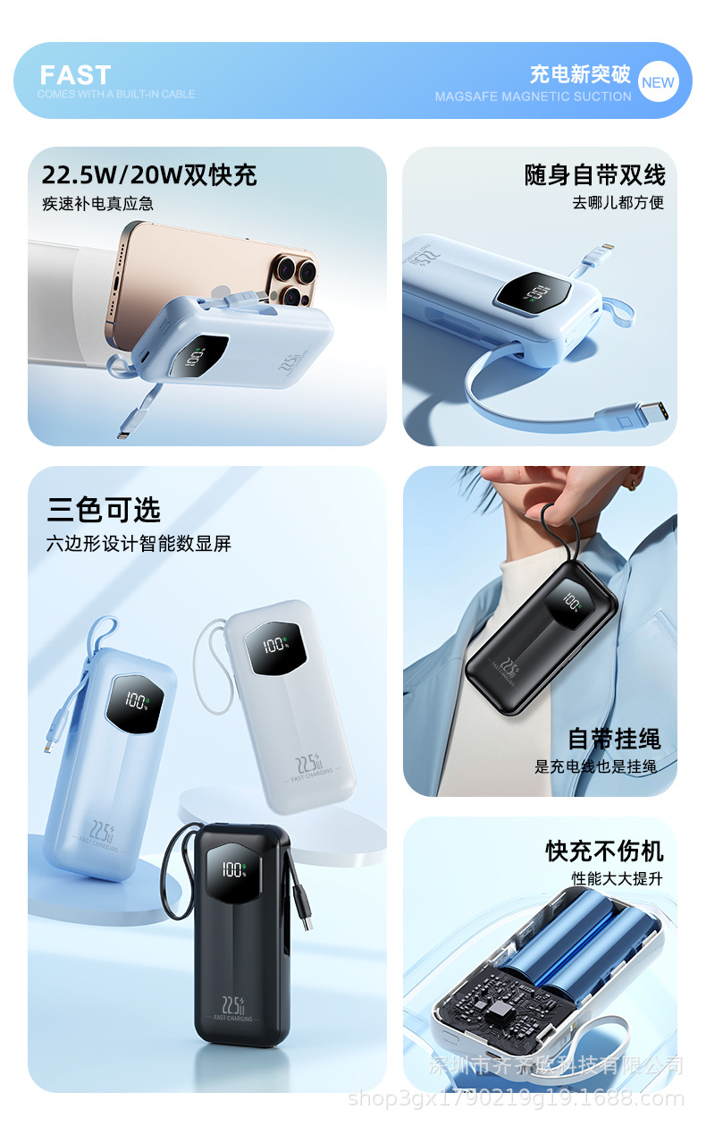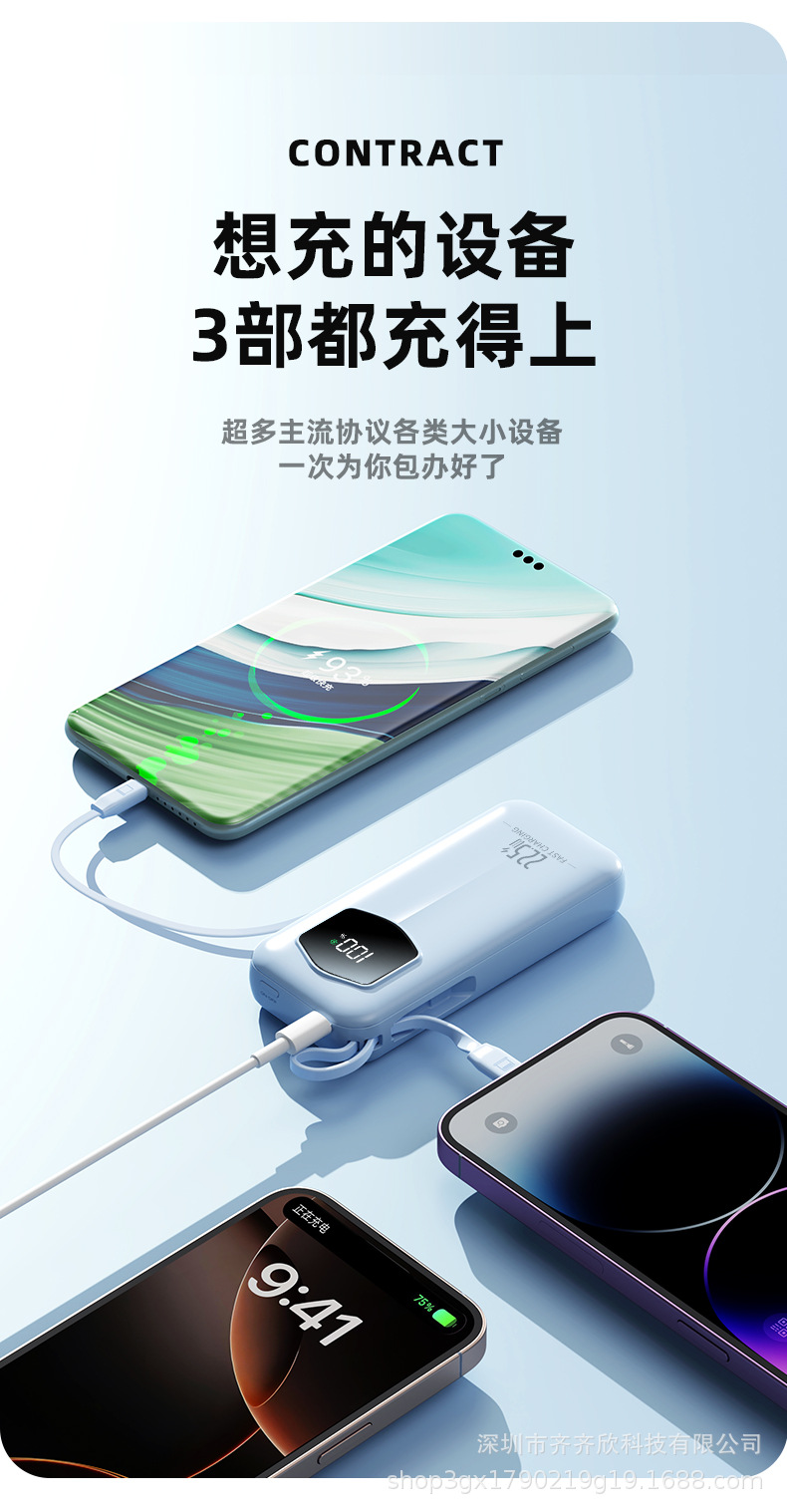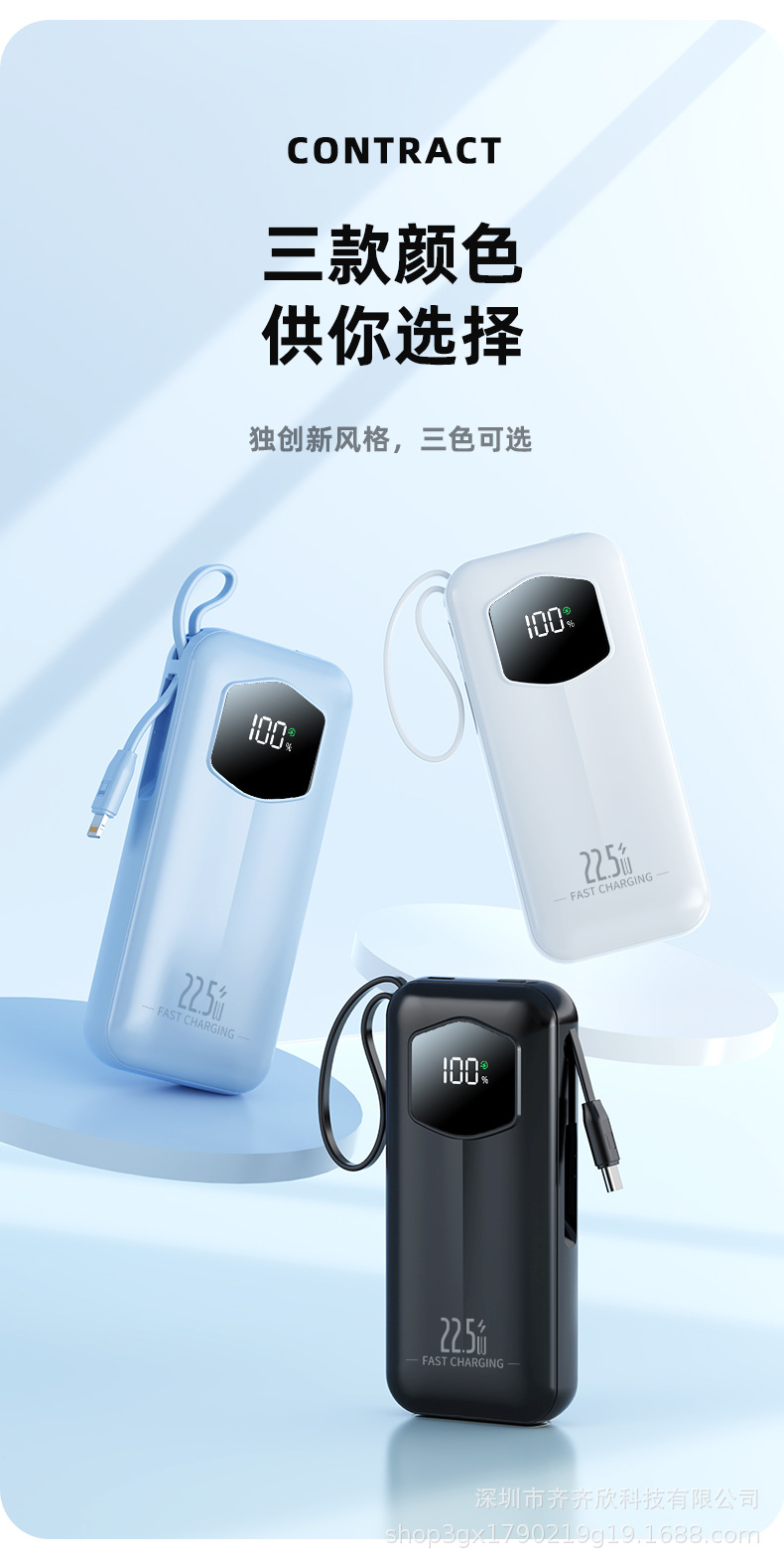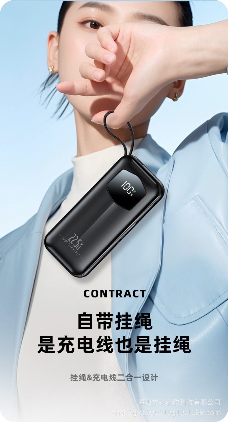 跨境新款伸缩自带线10000毫安充电宝PD超级快充移动电源礼品定 制