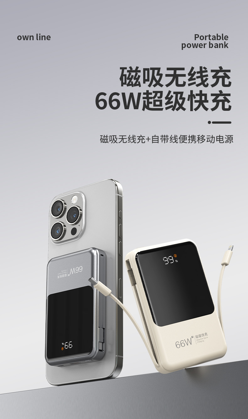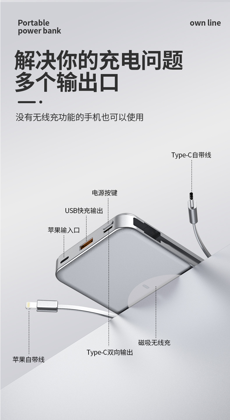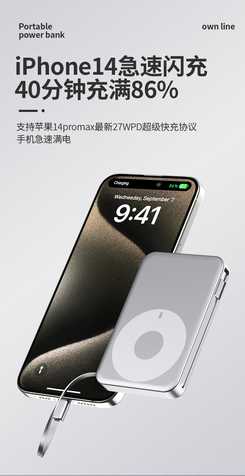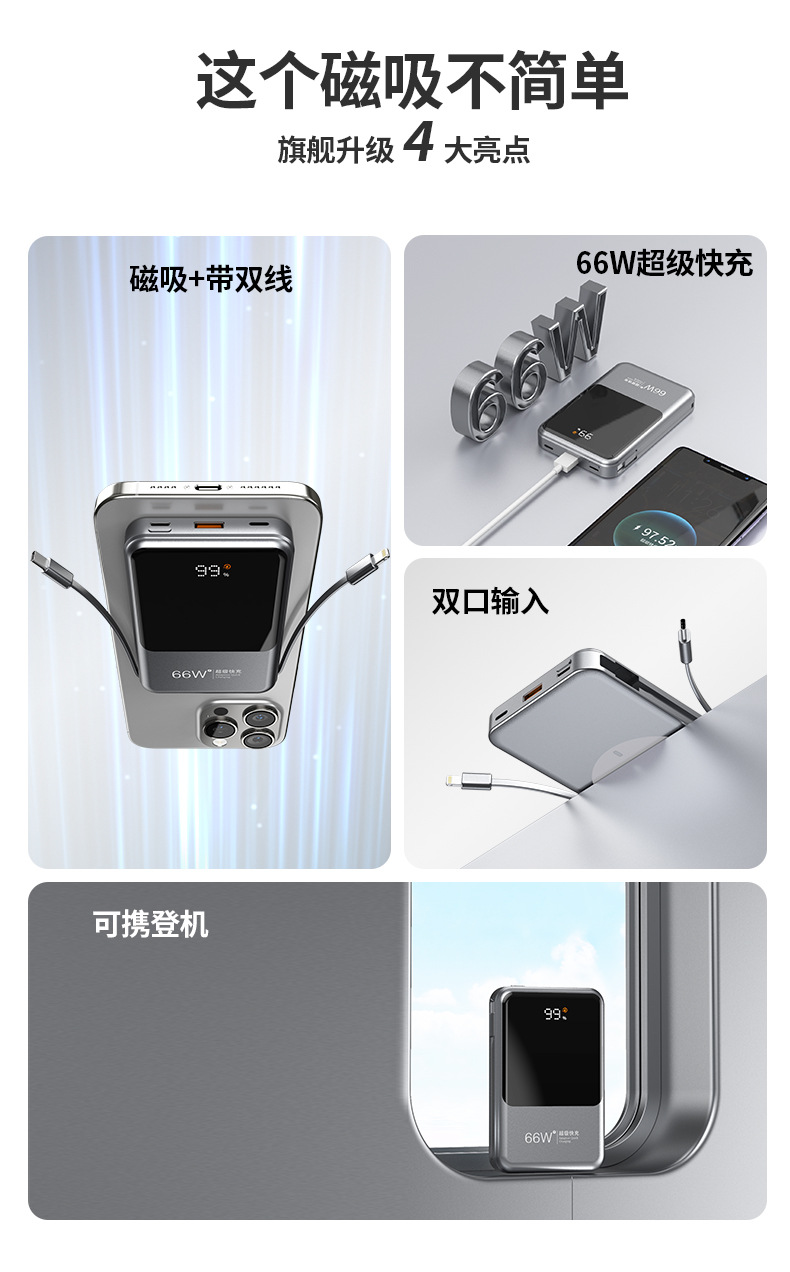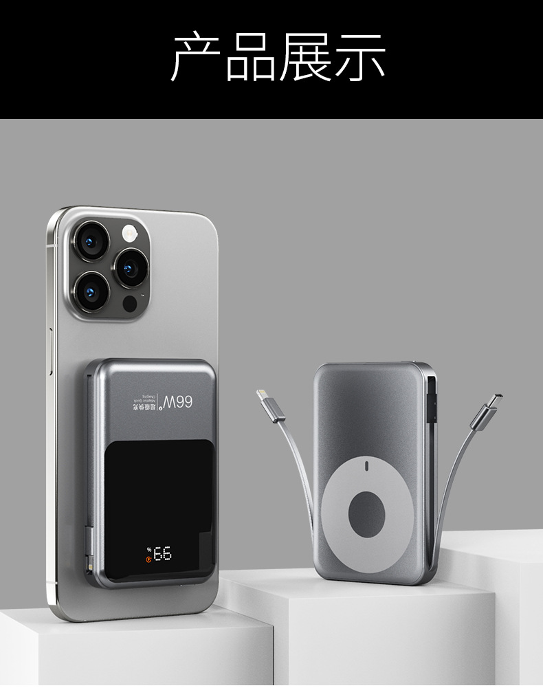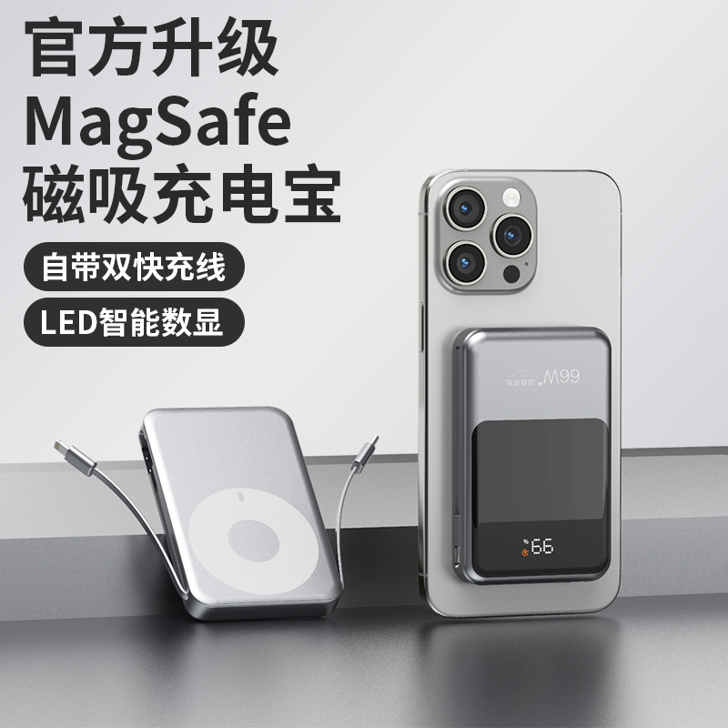 跨境新款磁吸Magsafe无线充自带线充电宝10000毫安移动电源快充