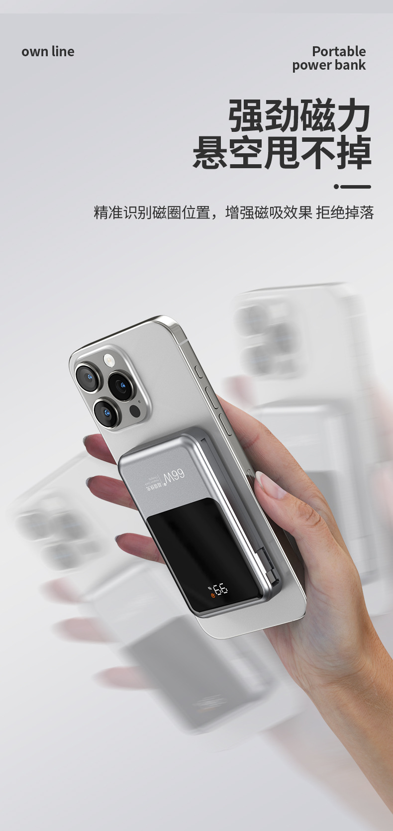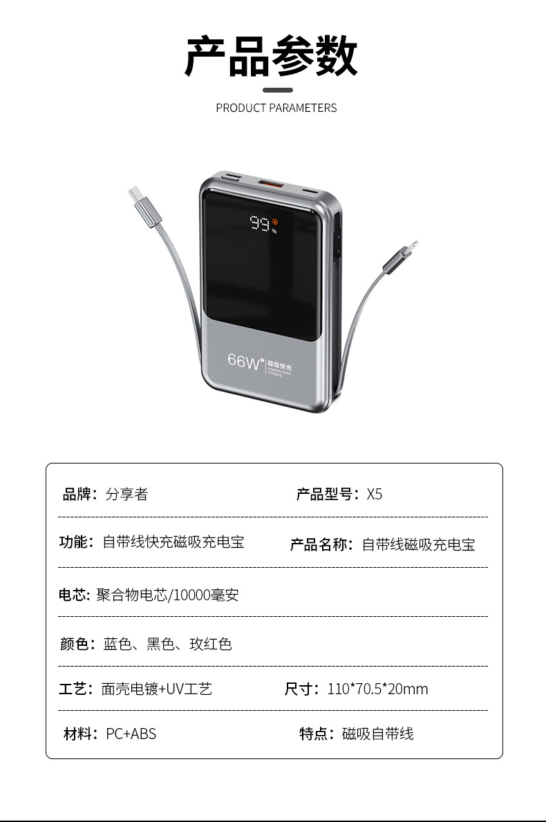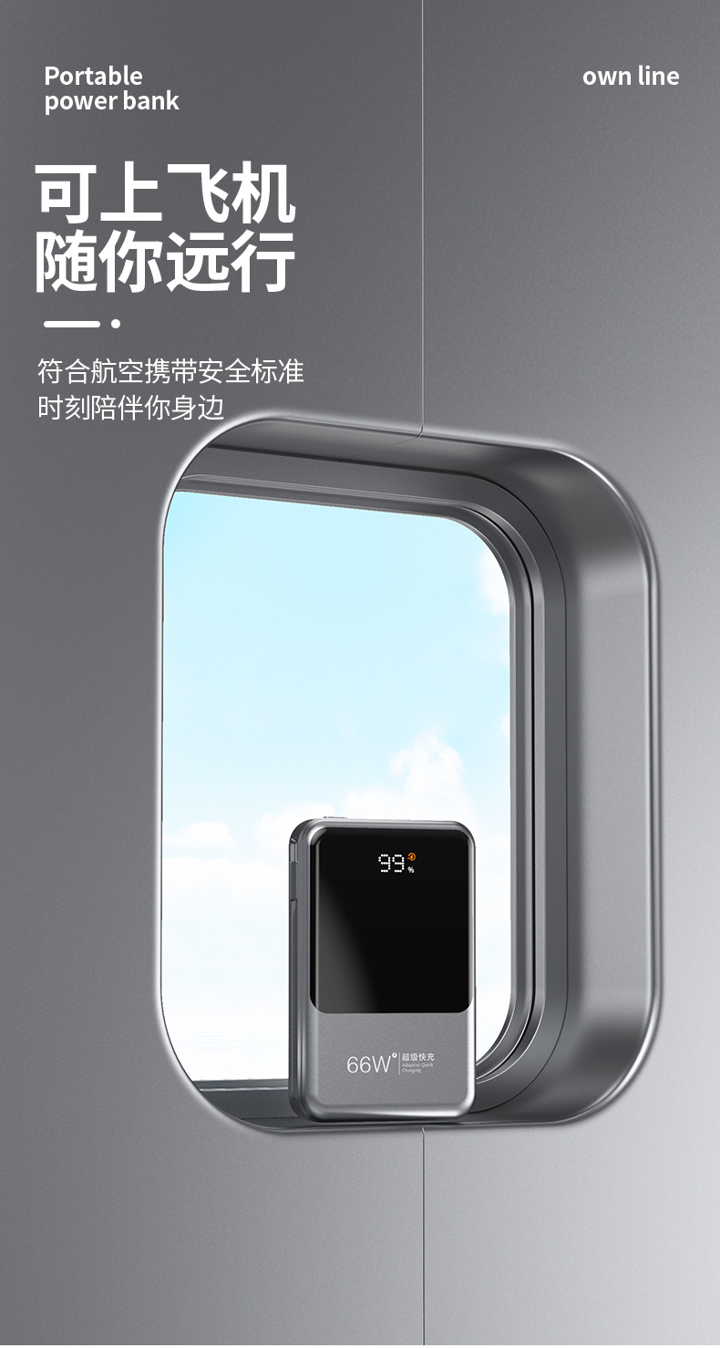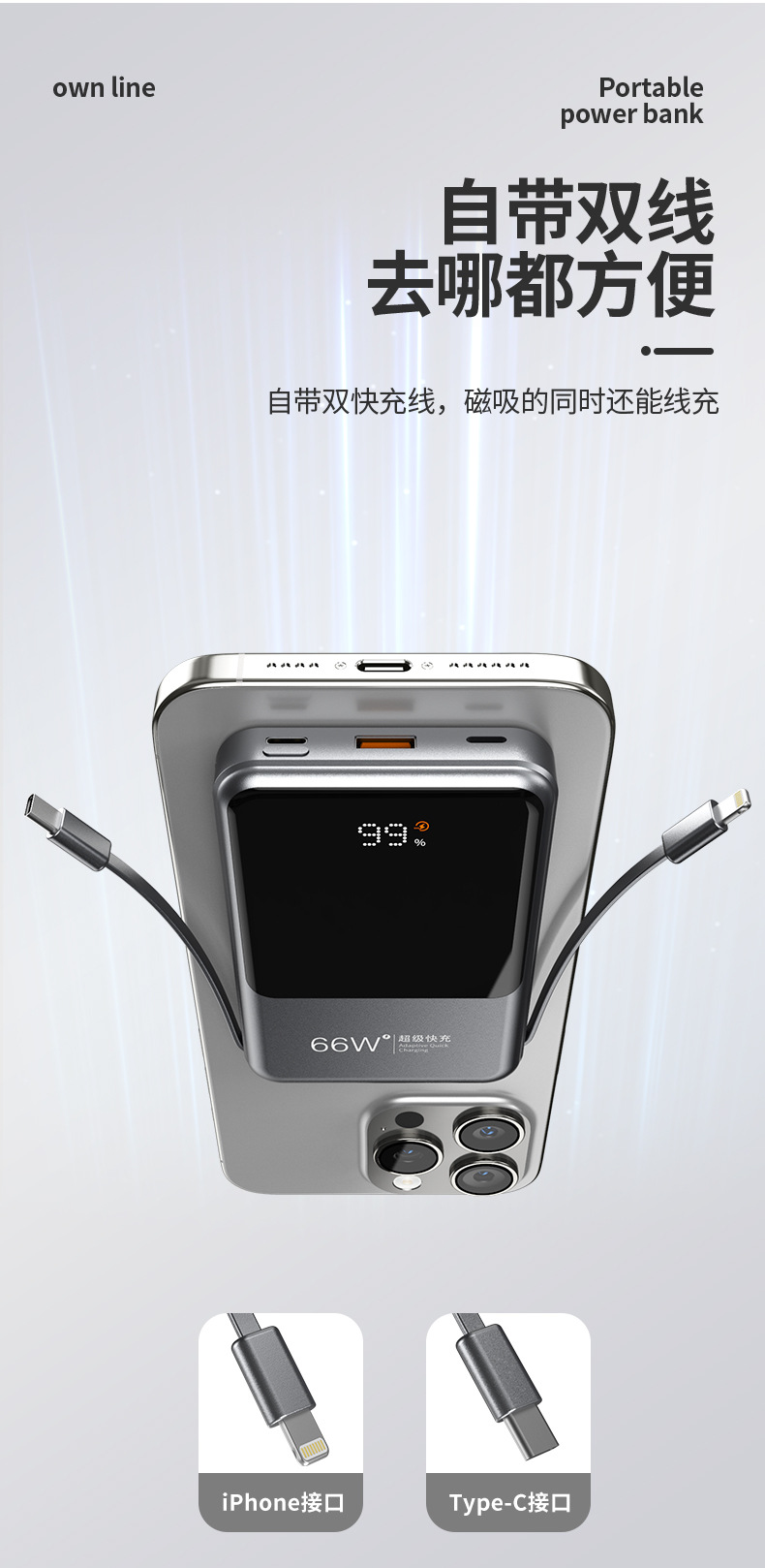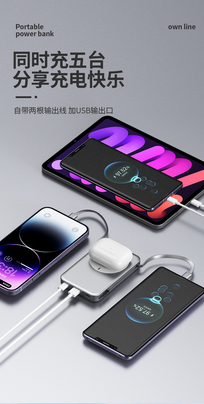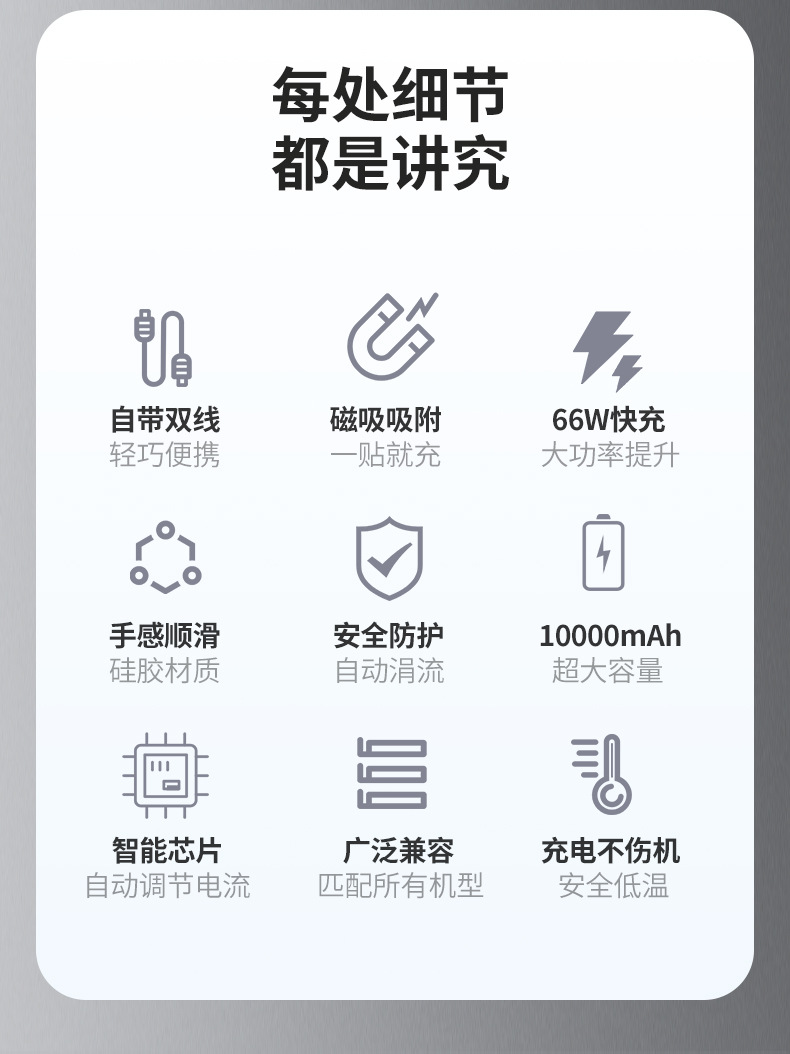 跨境新款磁吸Magsafe无线充自带线充电宝10000毫安移动电源快充