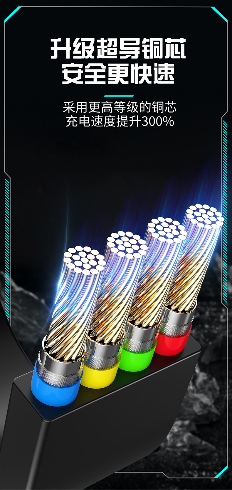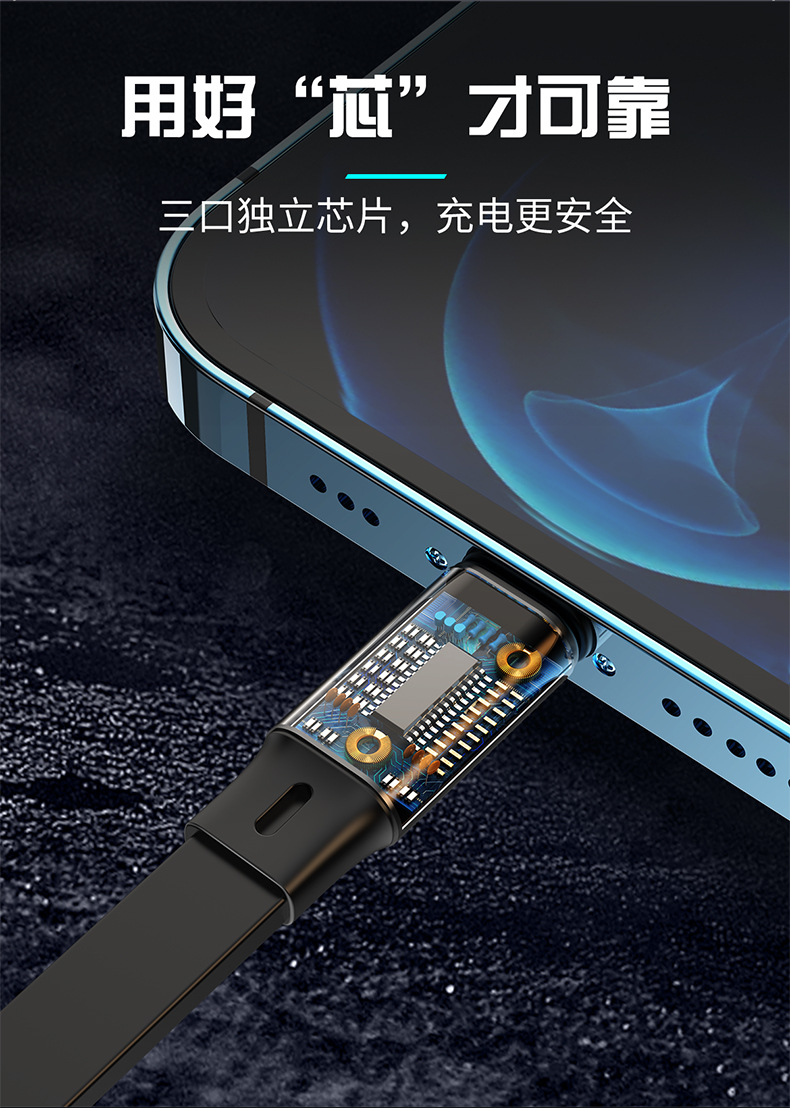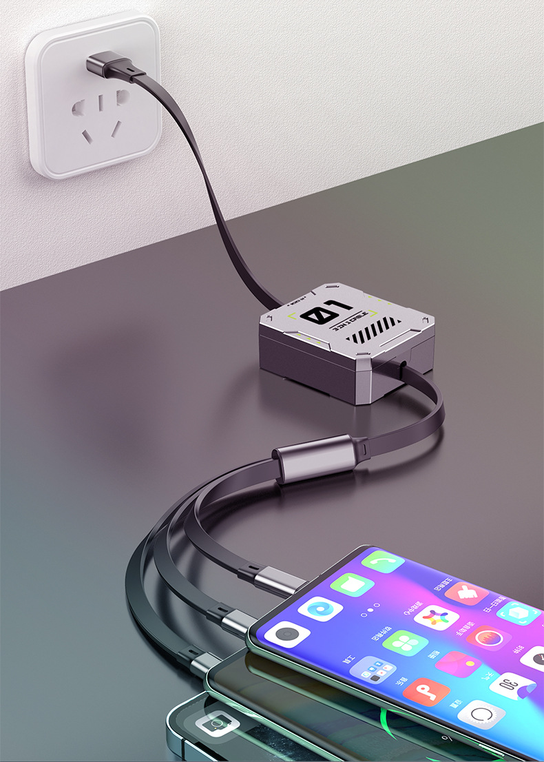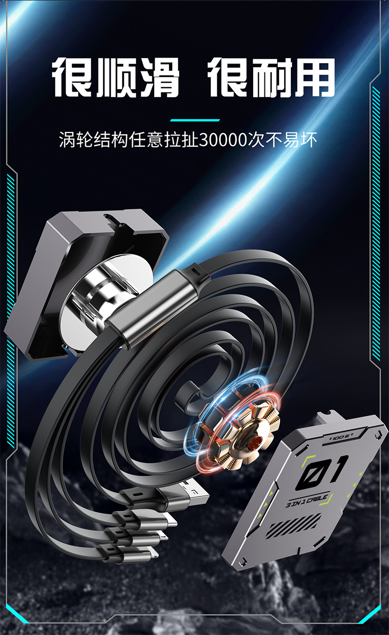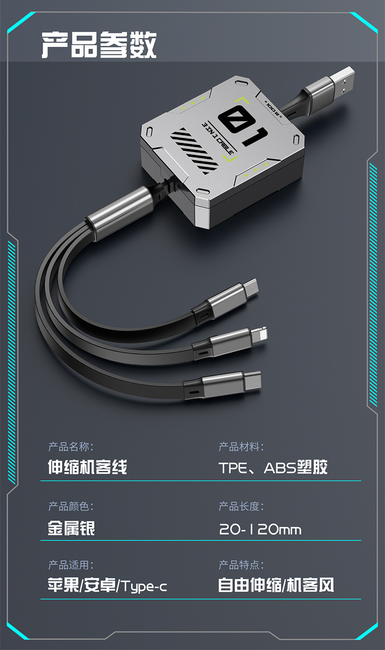 超级快充6A伸缩三合一数据线礼品印制图案一拖三快充机甲风充电线