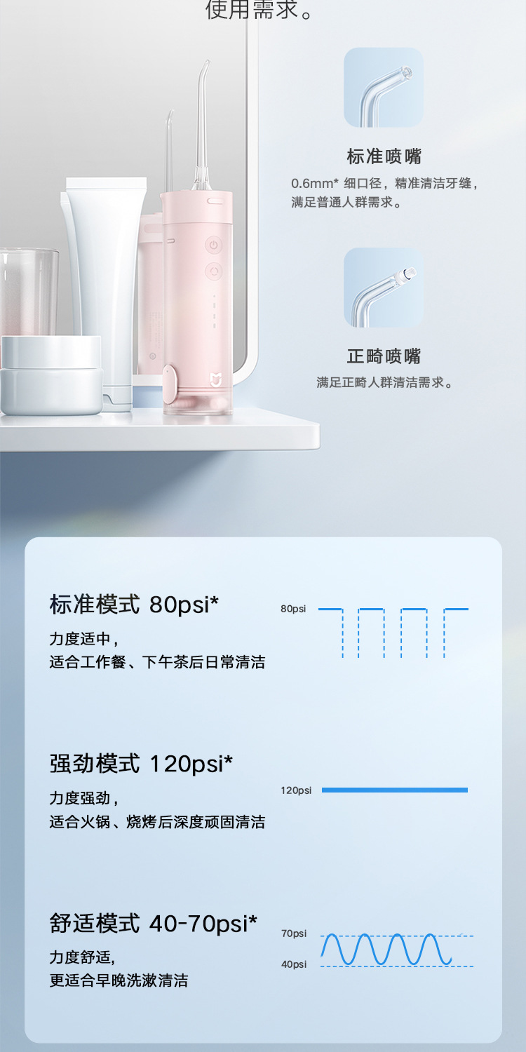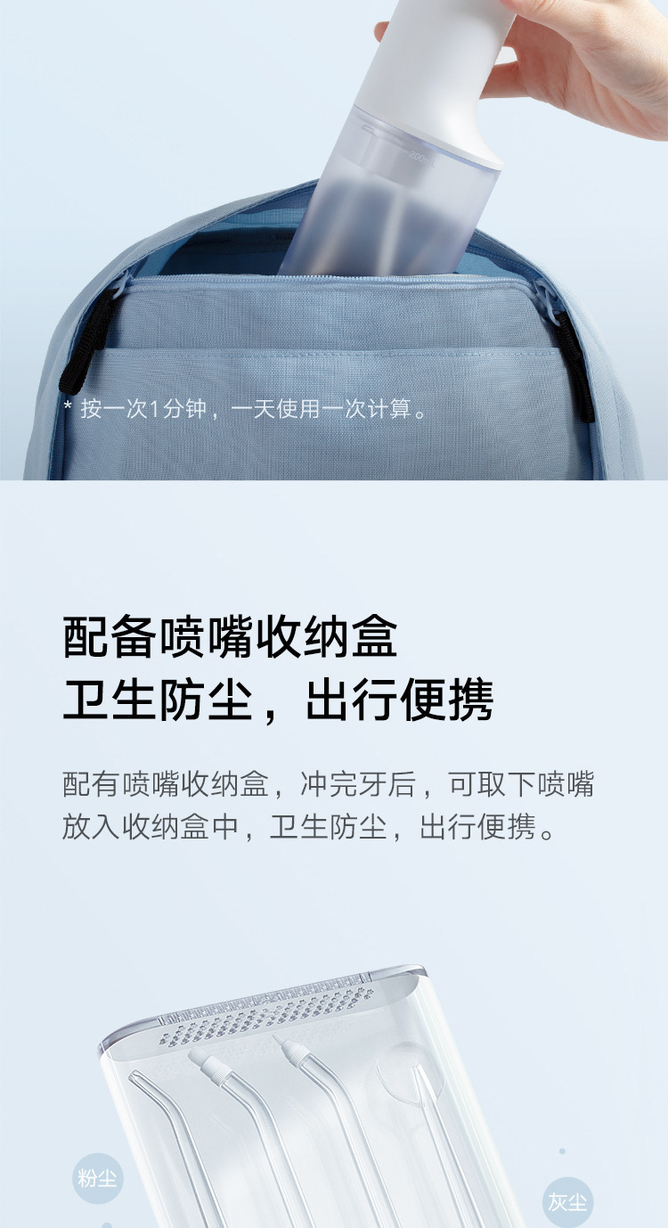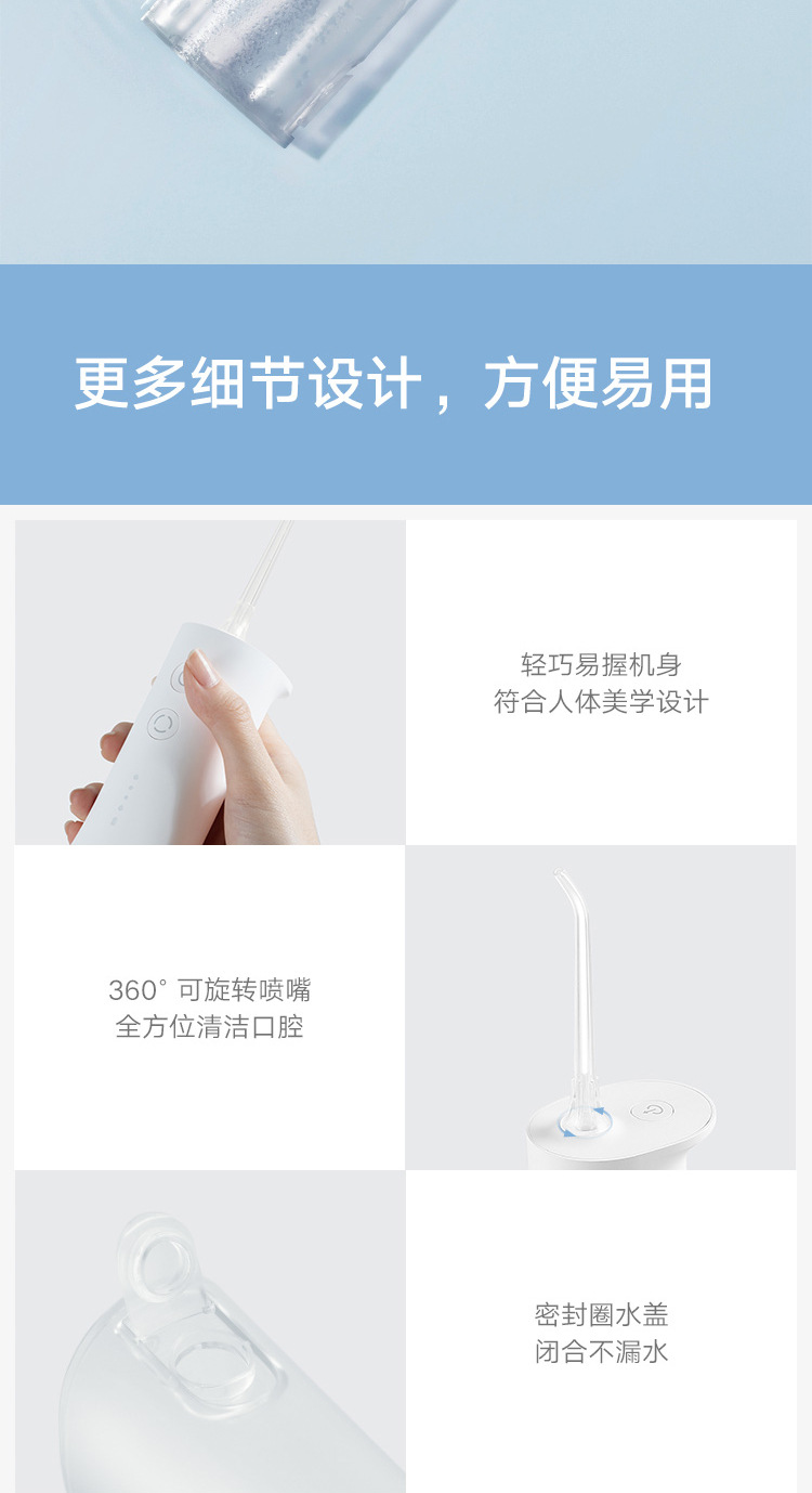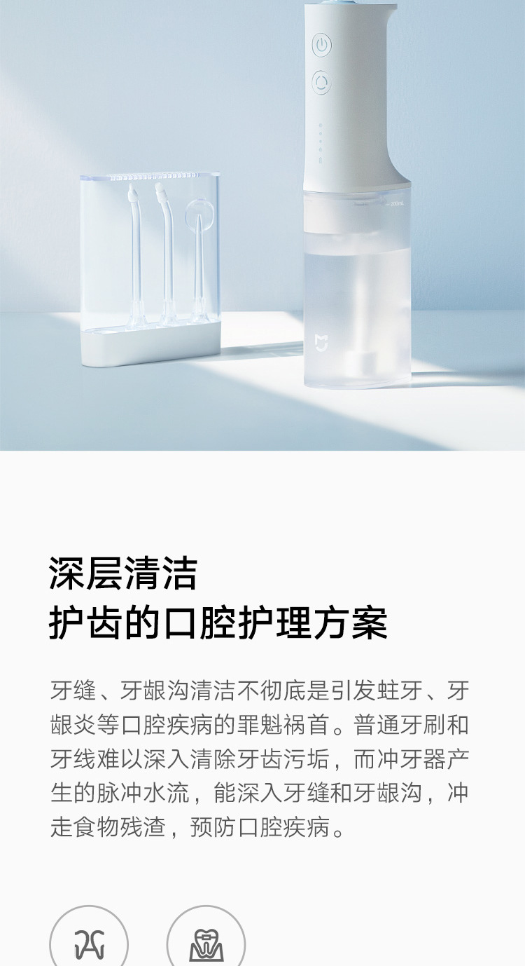 小米米家电动冲牙器家用便携冲牙器F300口腔洁牙洗牙器4种喷嘴F40