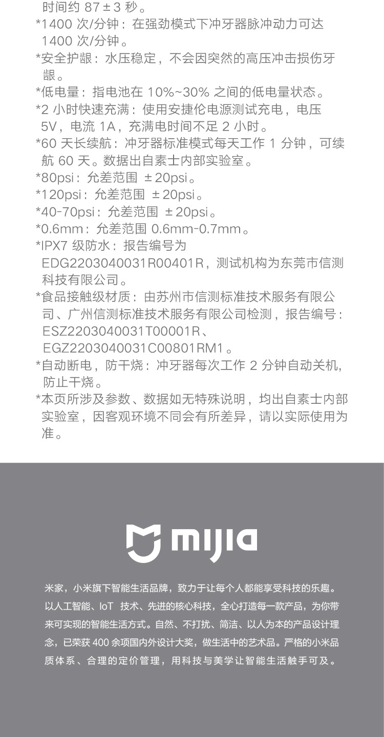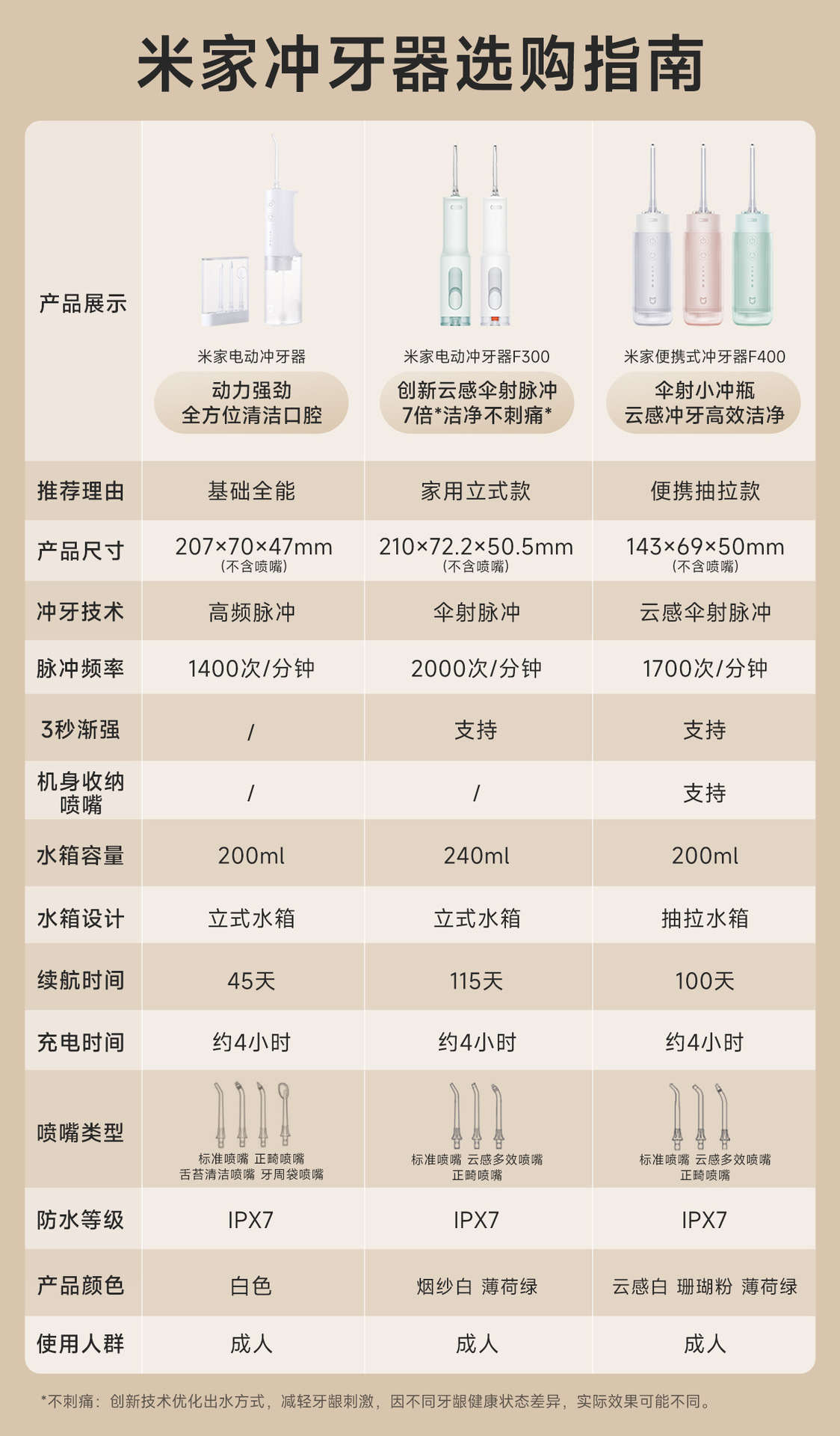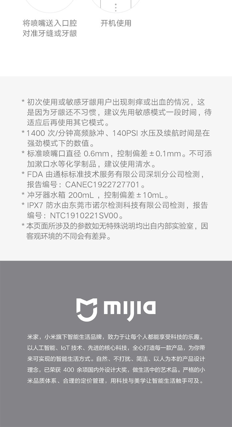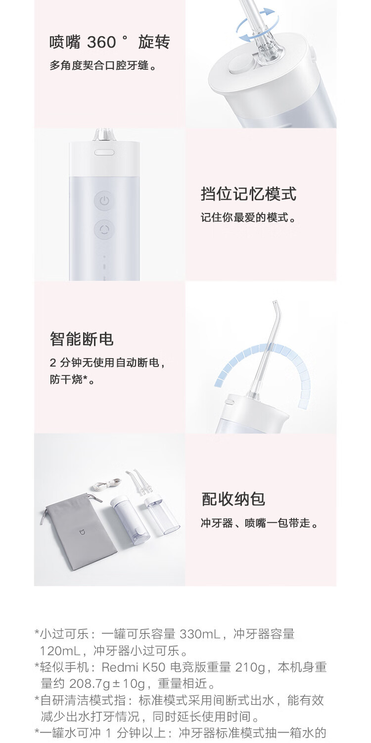 小米米家电动冲牙器家用便携冲牙器F300口腔洁牙洗牙器4种喷嘴F40