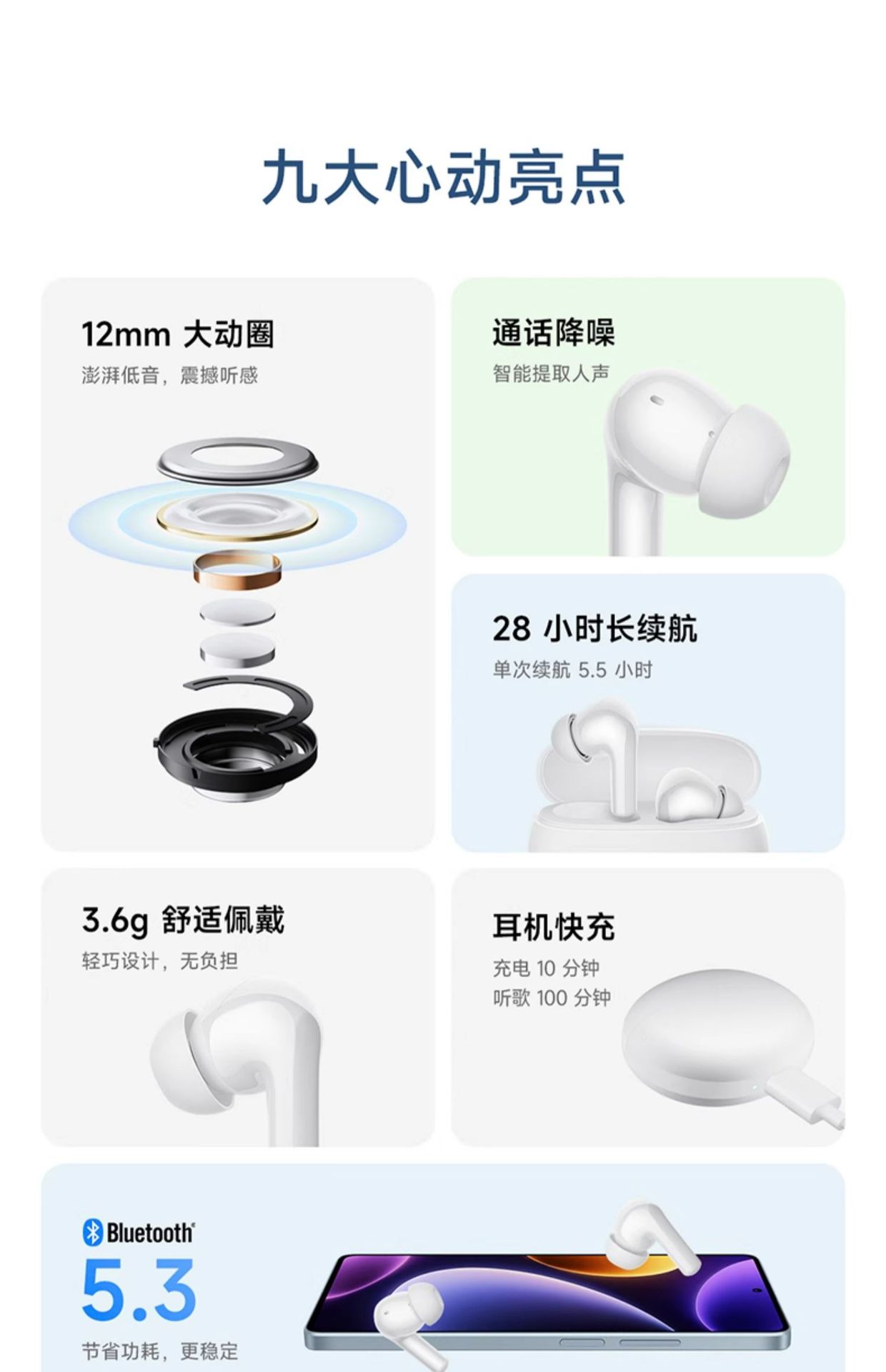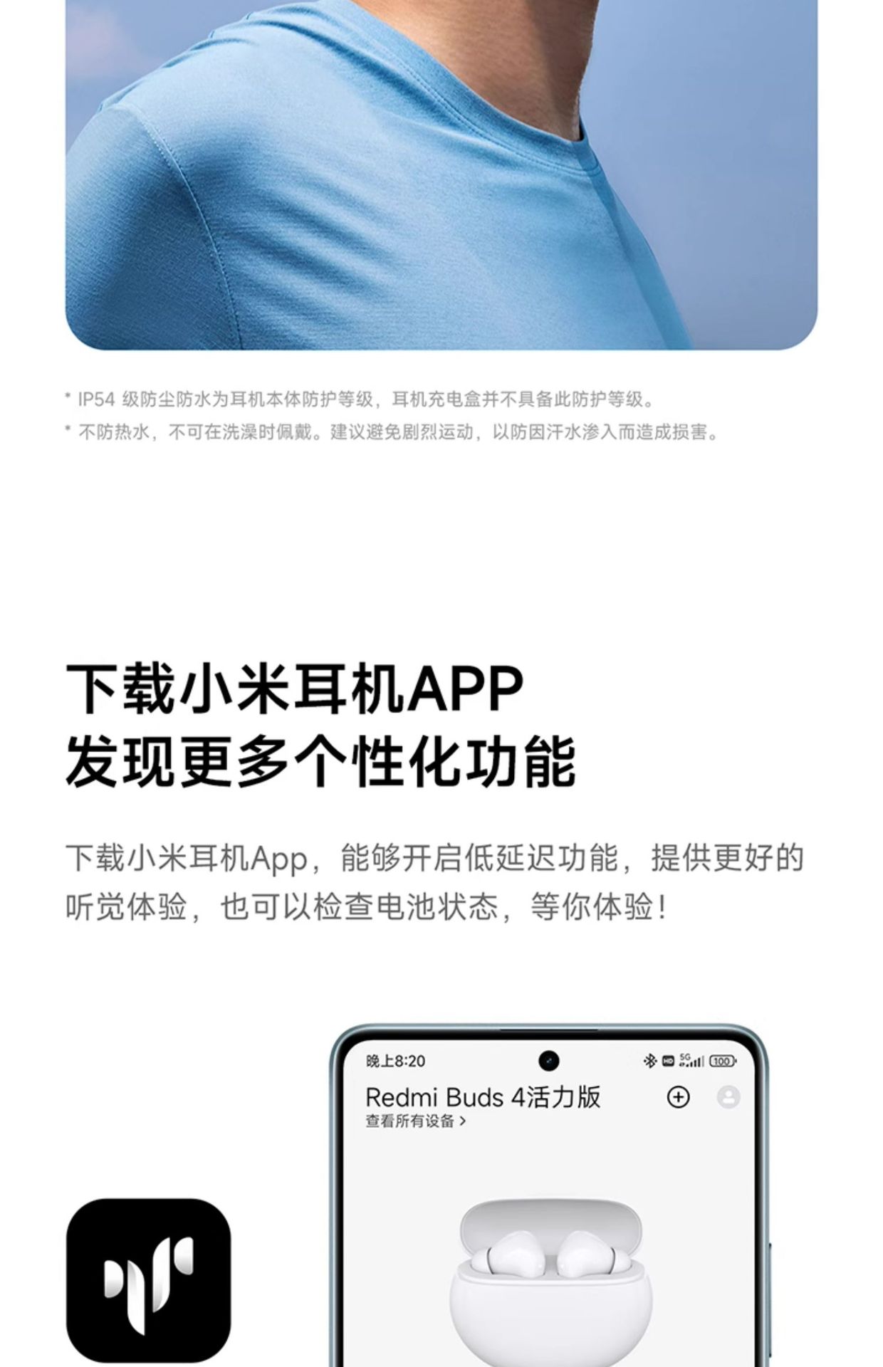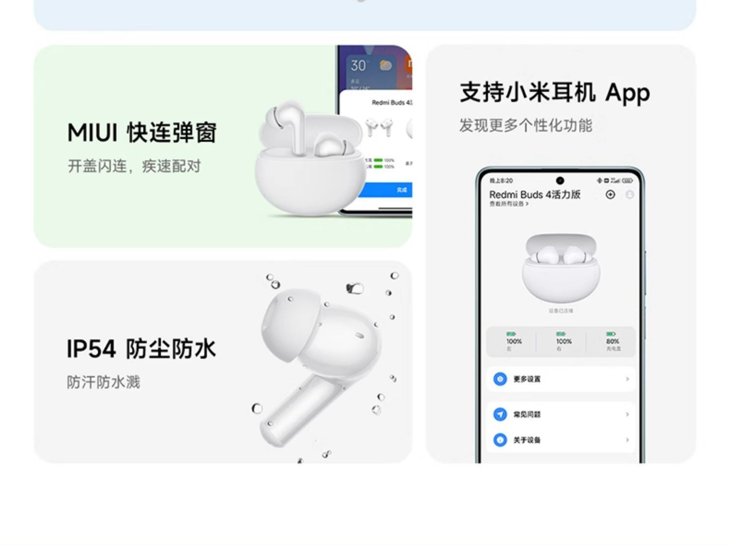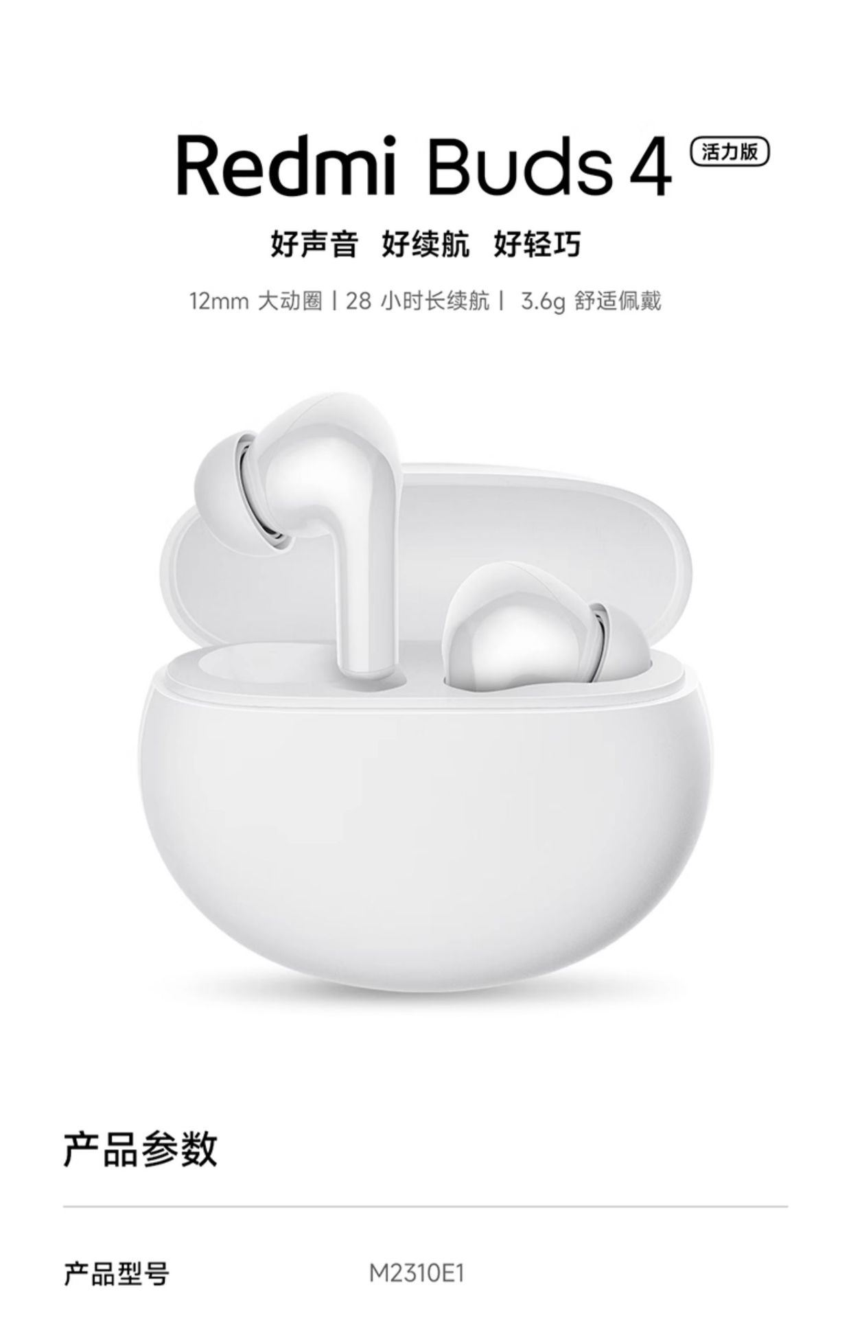 小米RedmiBuds4活力版蓝牙耳机入耳式28小时长续航通话降噪轻巧