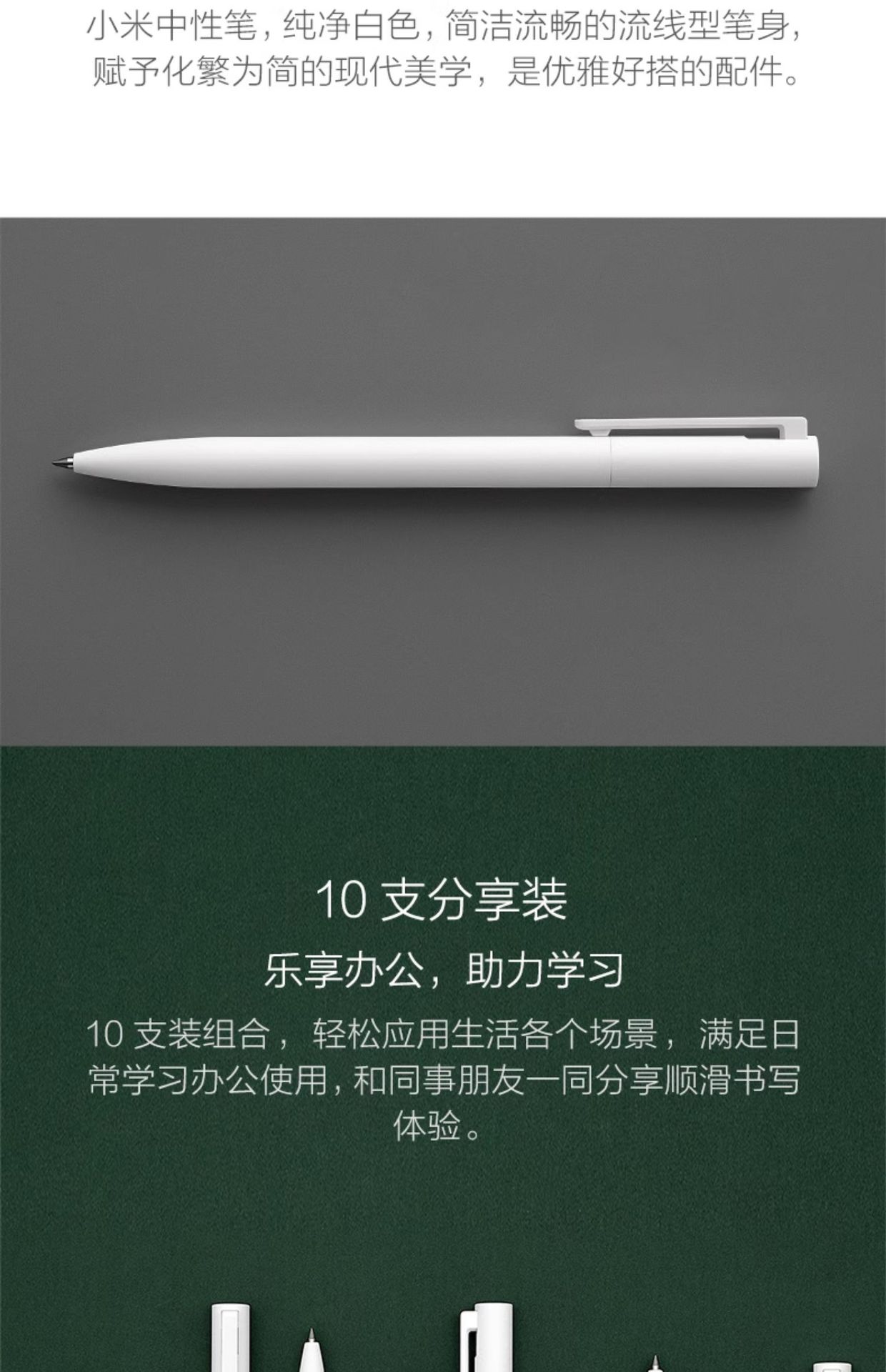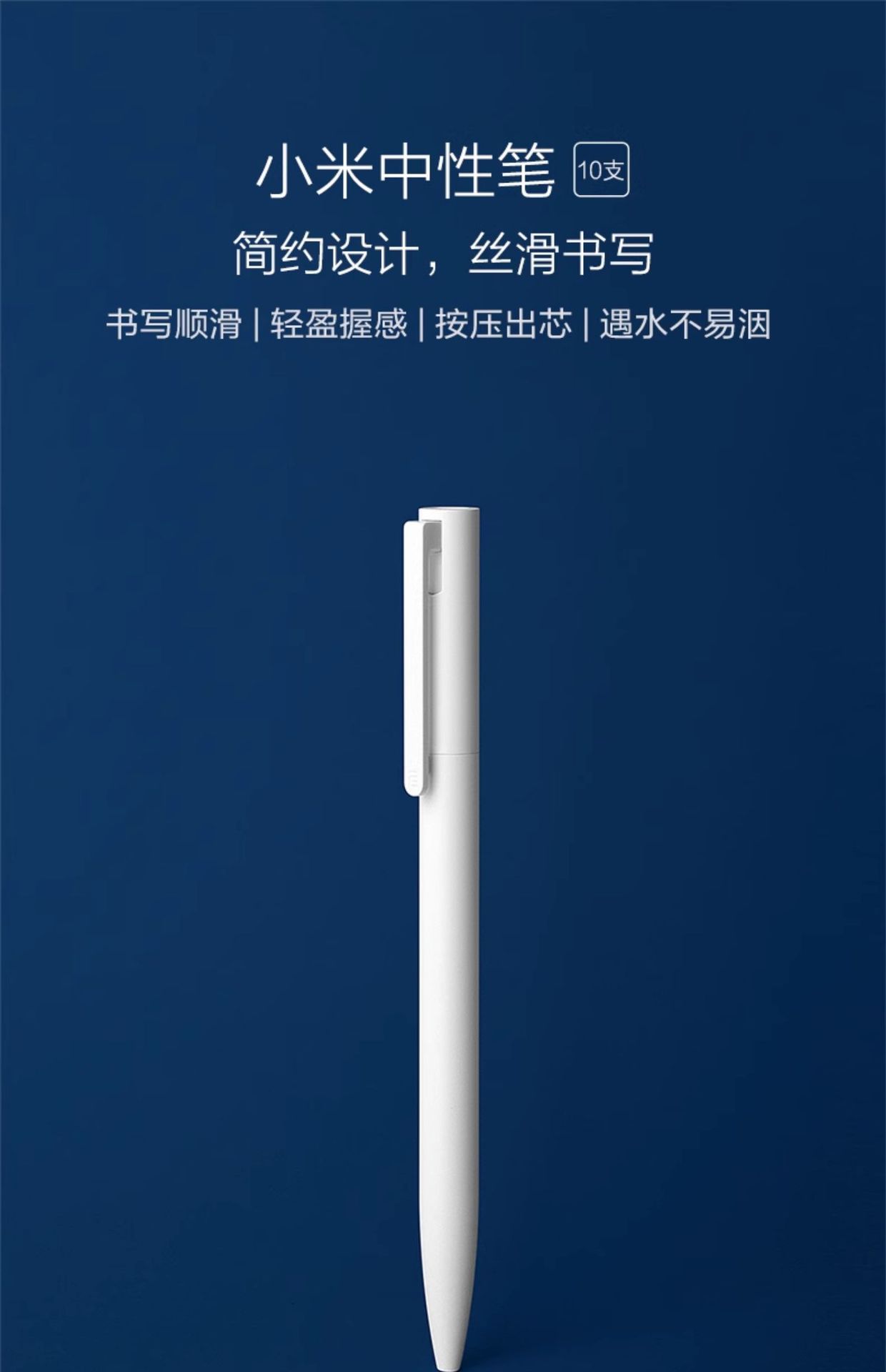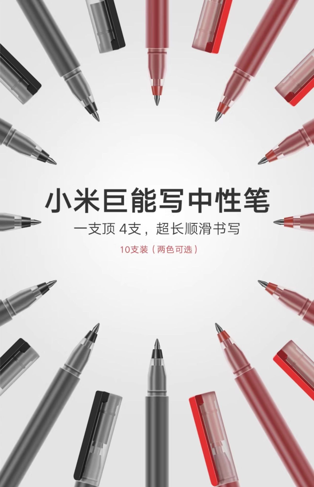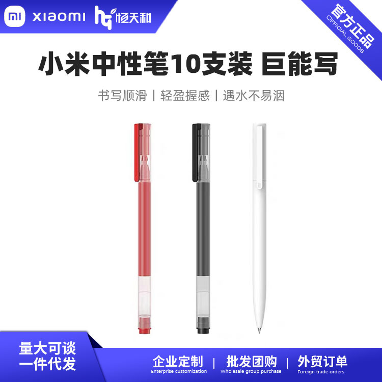 小米中性笔 10支装按压式0.5mm办公签字笔考试专用巨能写黑色红色