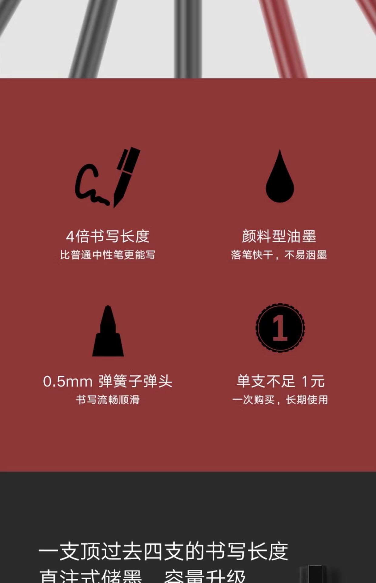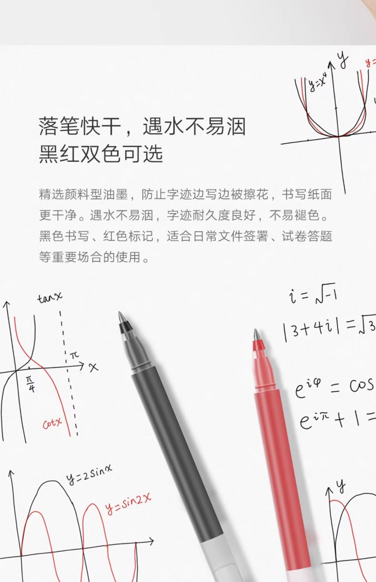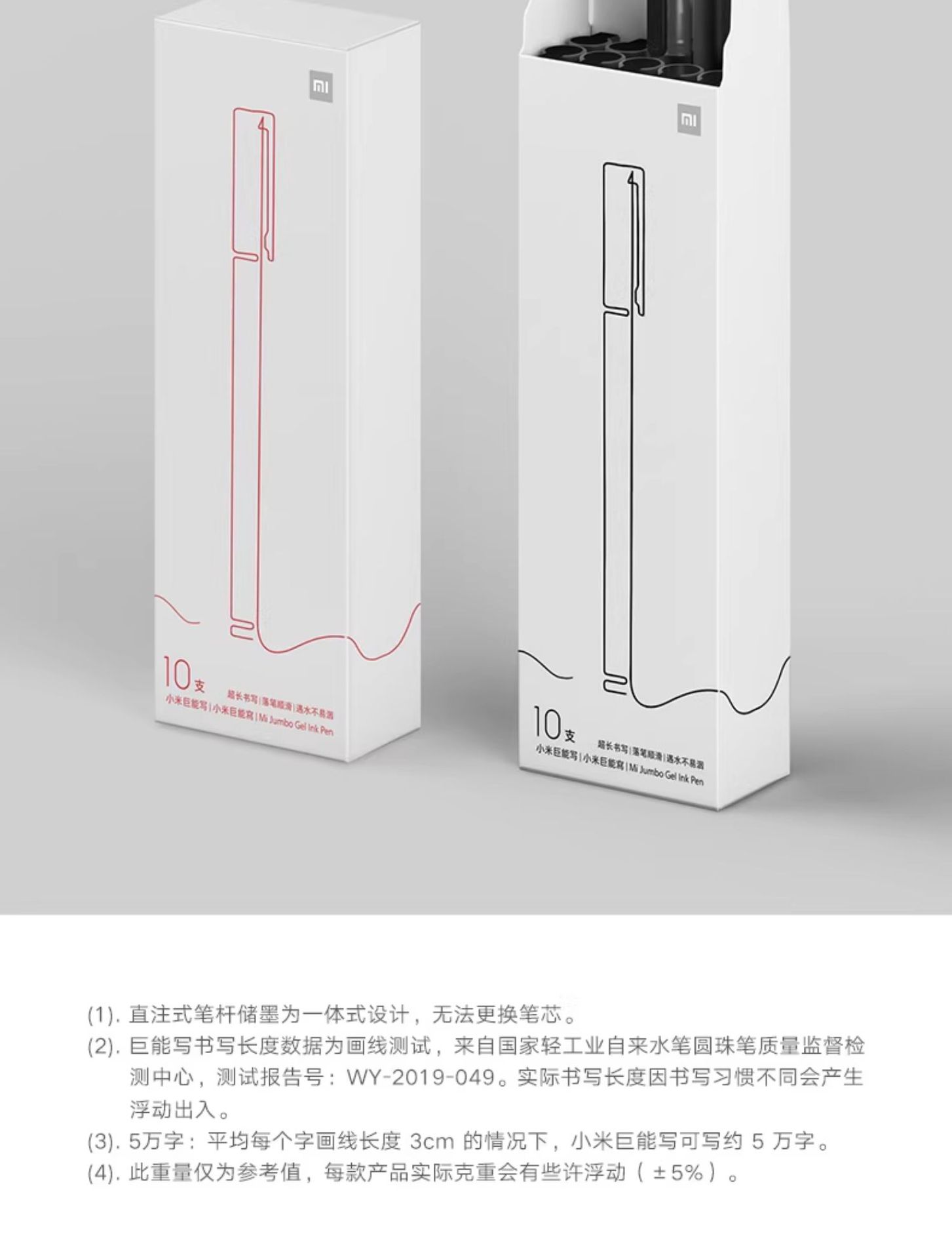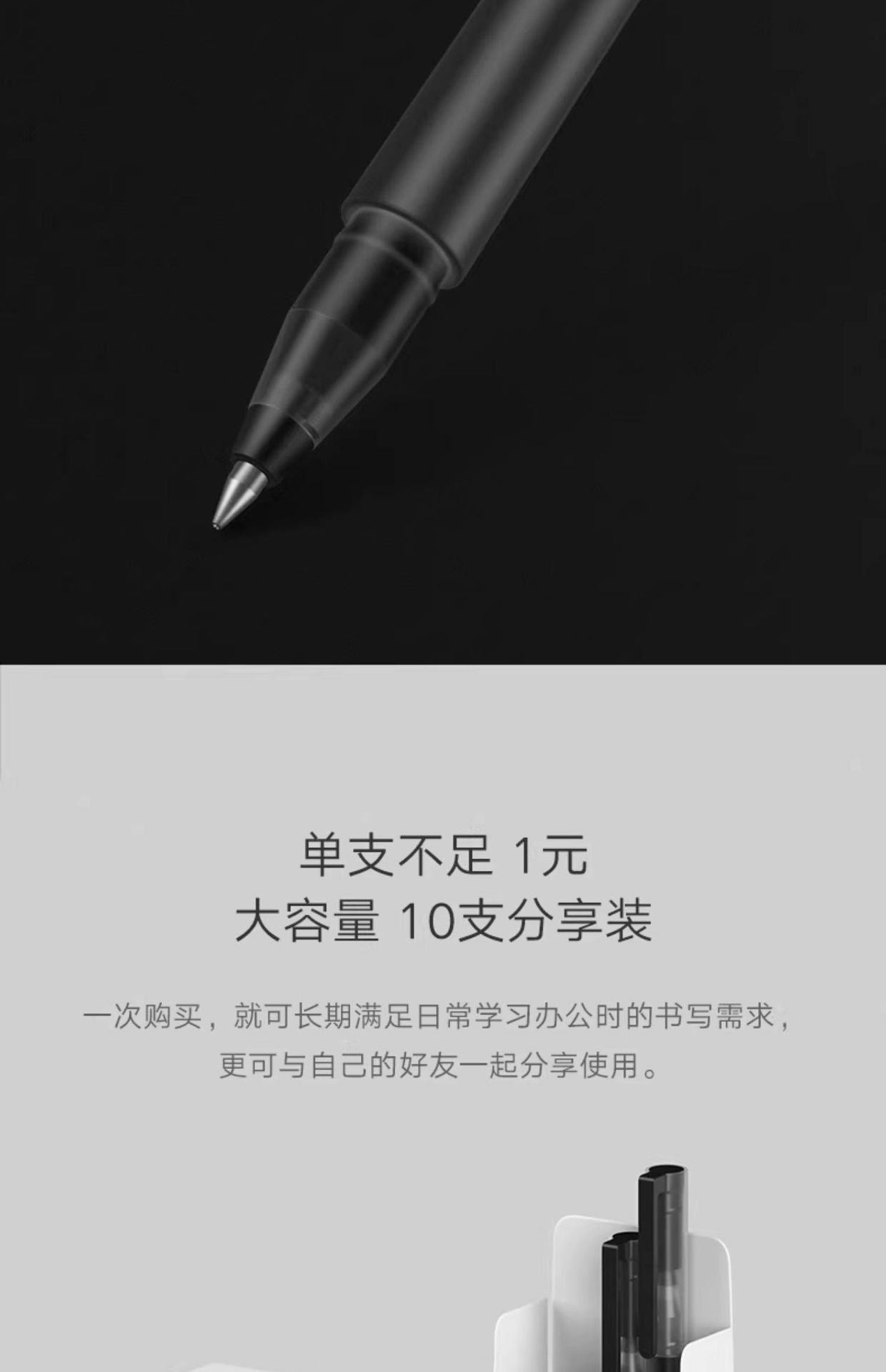 小米中性笔 10支装按压式0.5mm办公签字笔考试专用巨能写黑色红色