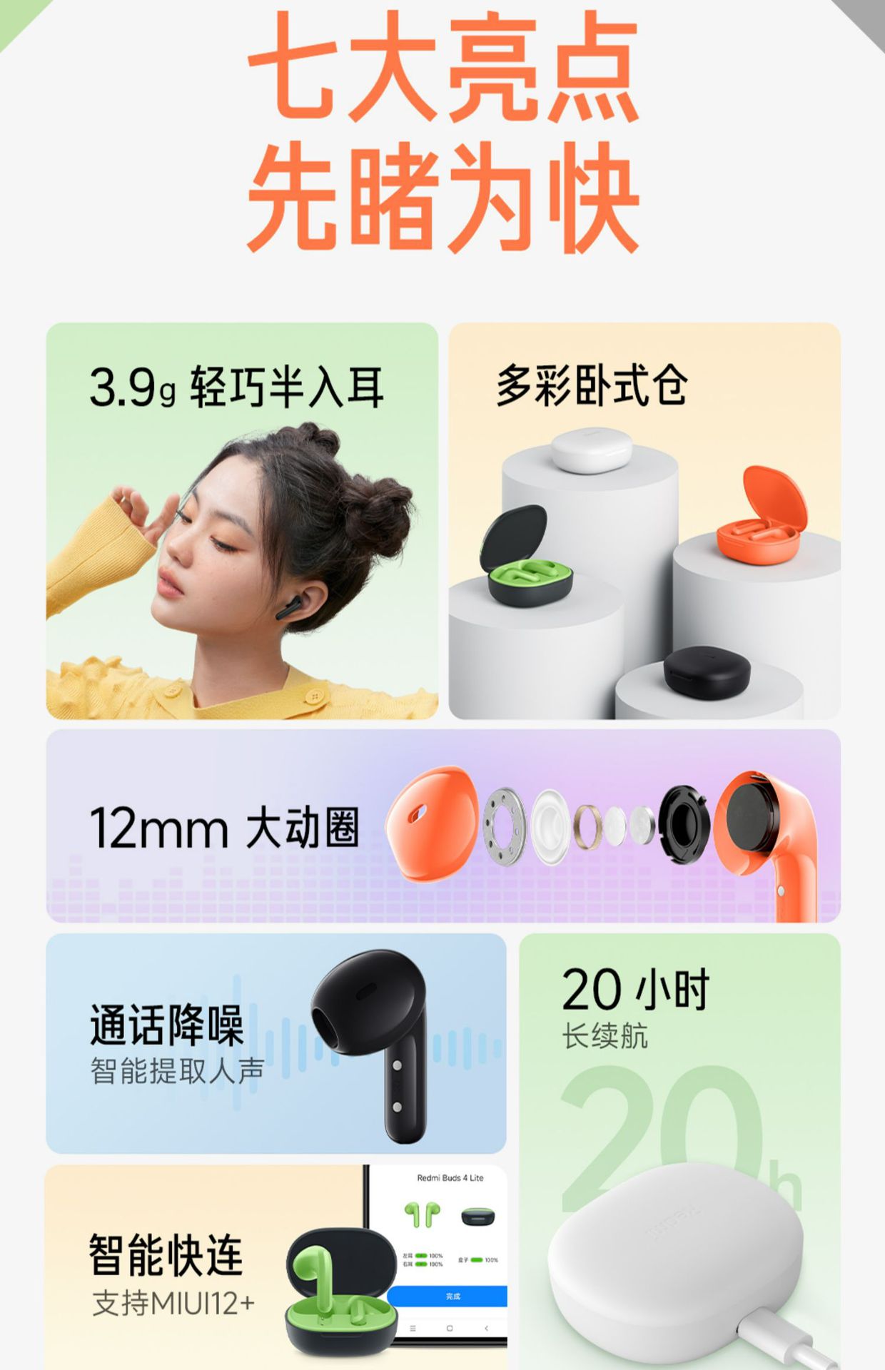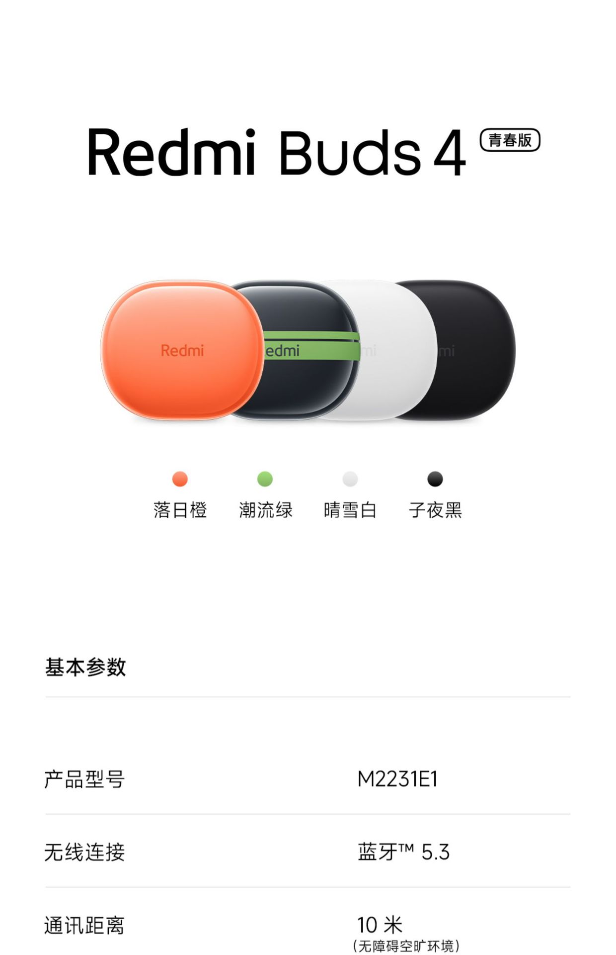 Redmi Buds4青春版蓝牙耳机舒适半入耳通话降噪青春潮流配色