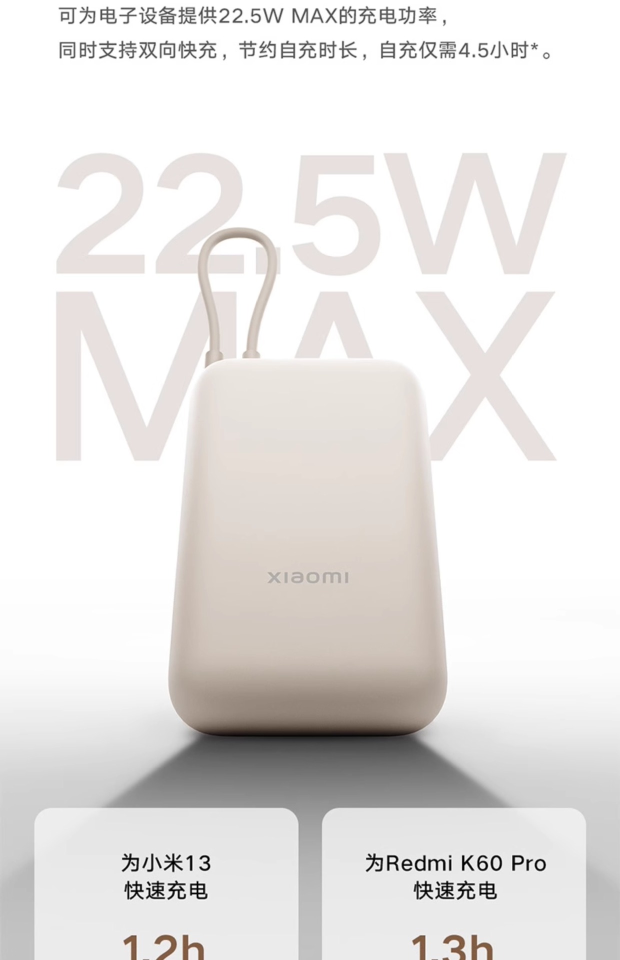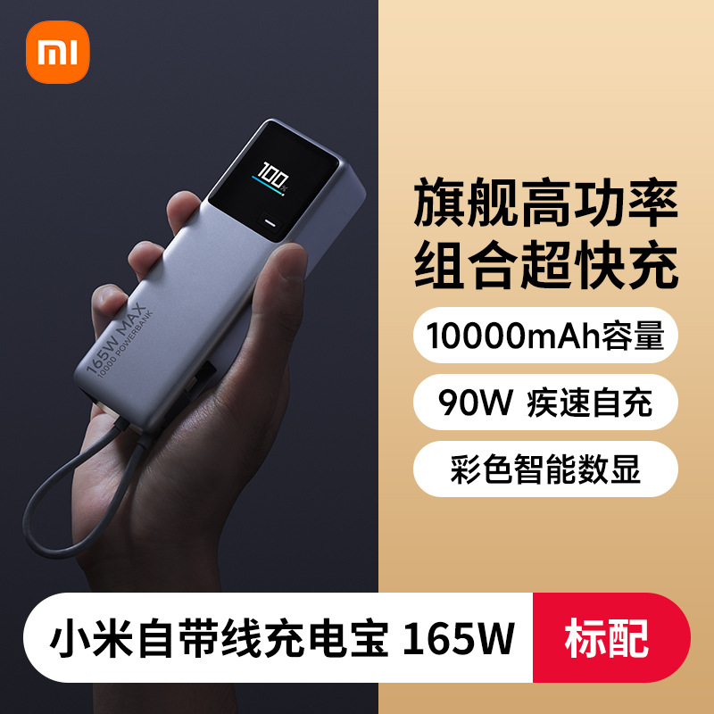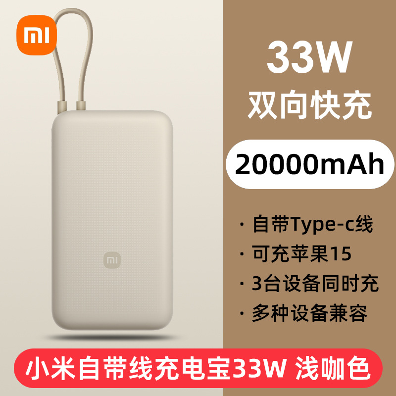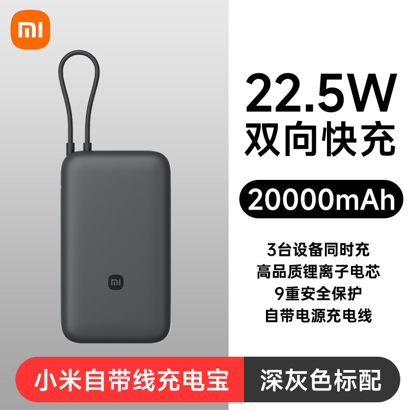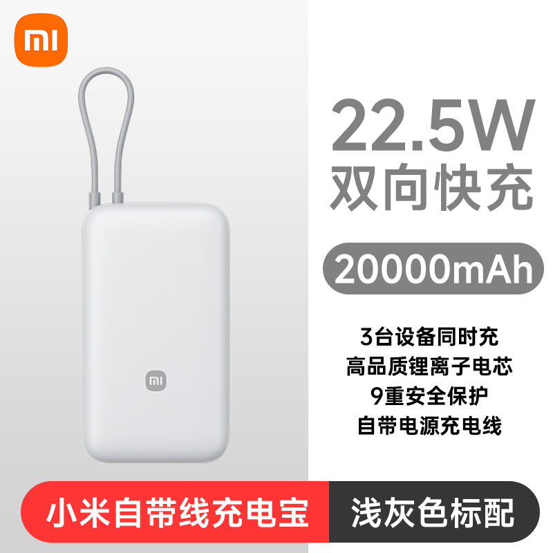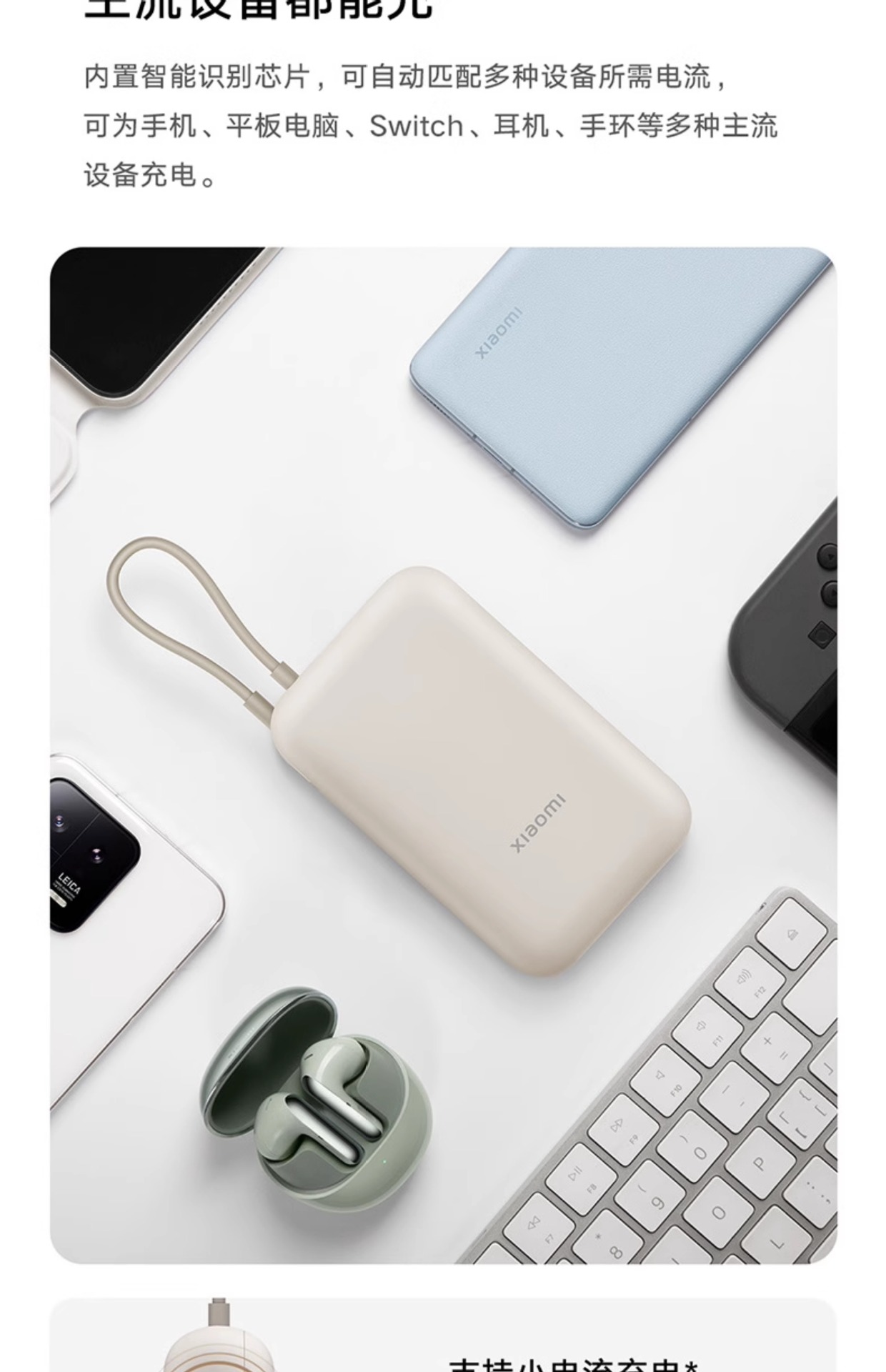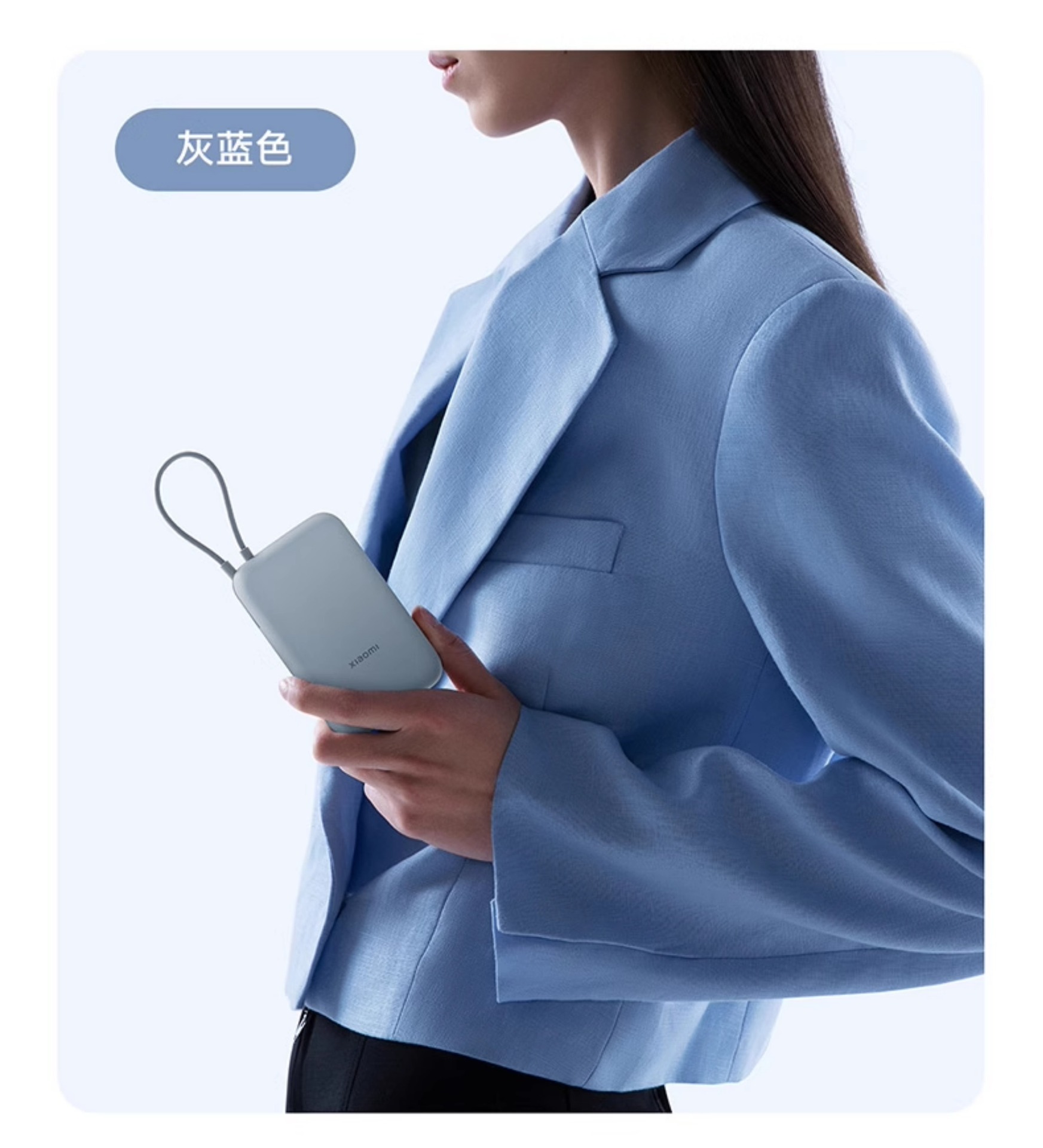 小米自带线充电宝10000mAh口袋版快充小巧迷你大容量便携移动电源