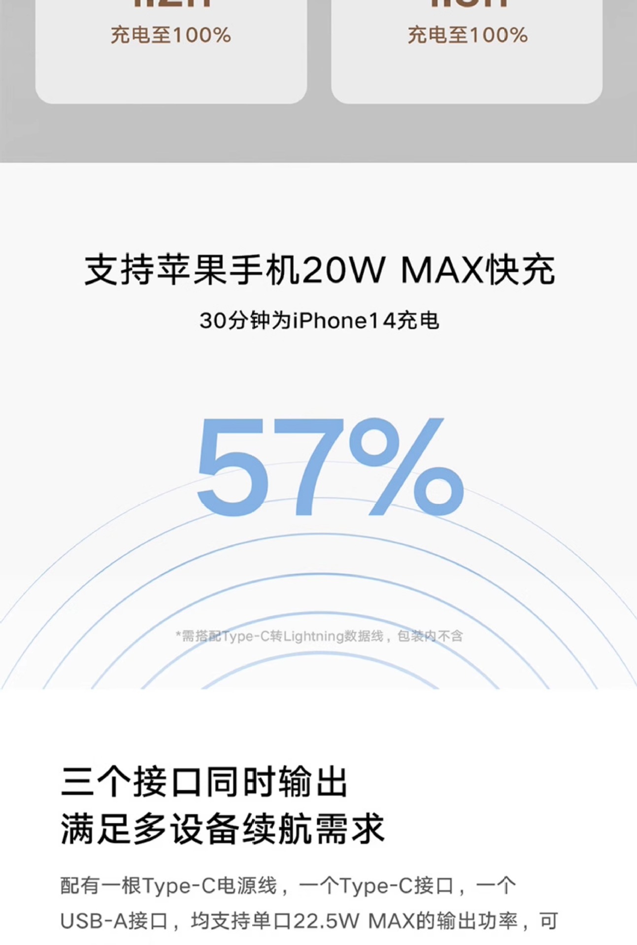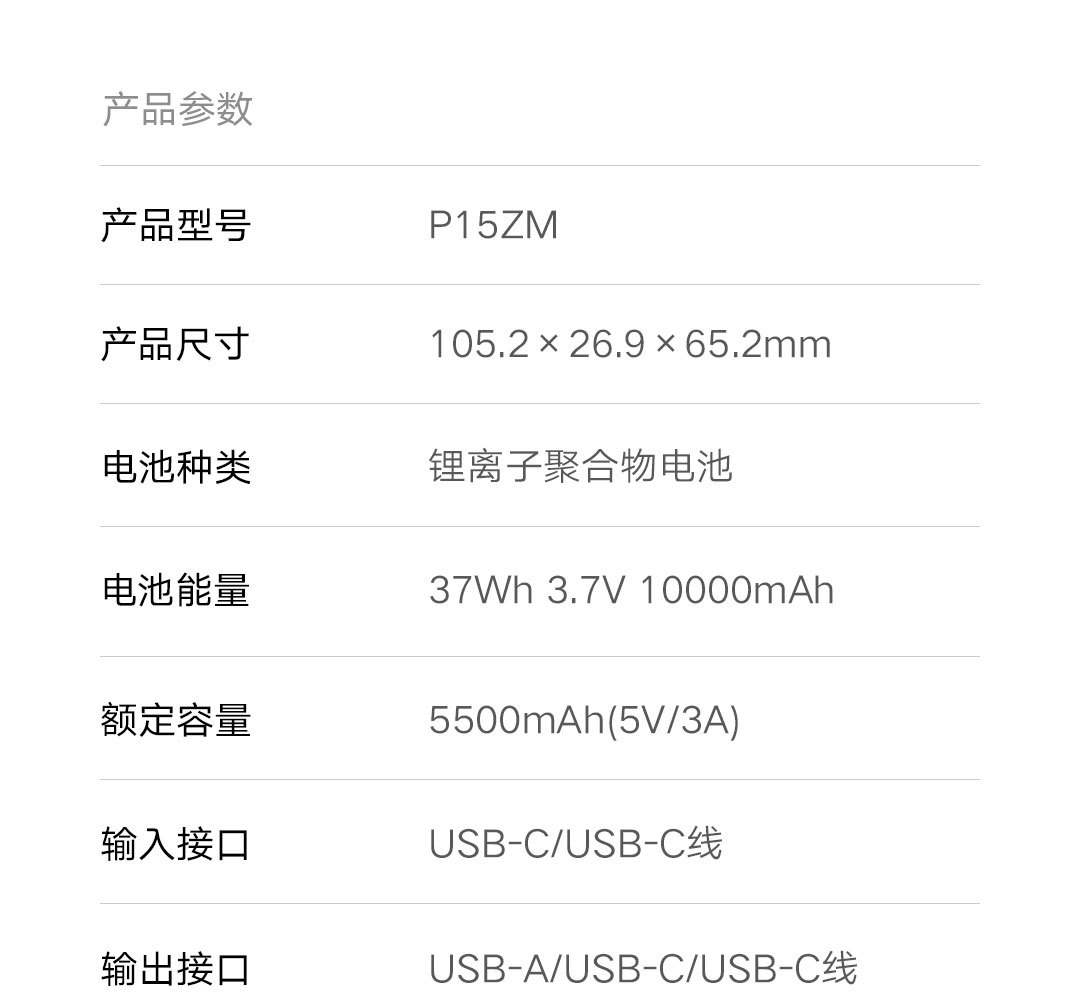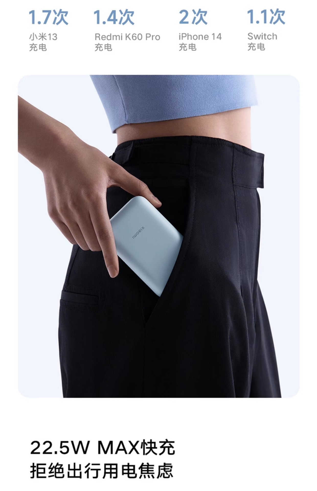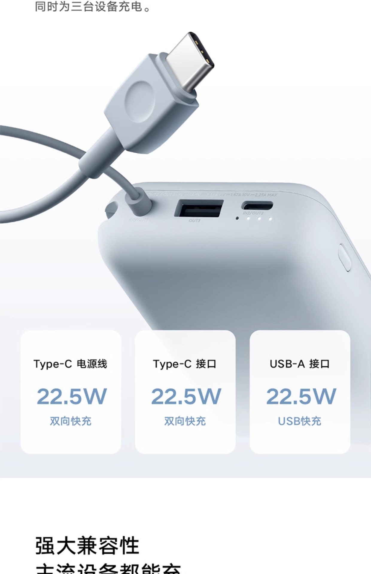 小米自带线充电宝10000mAh口袋版快充小巧迷你大容量便携移动电源