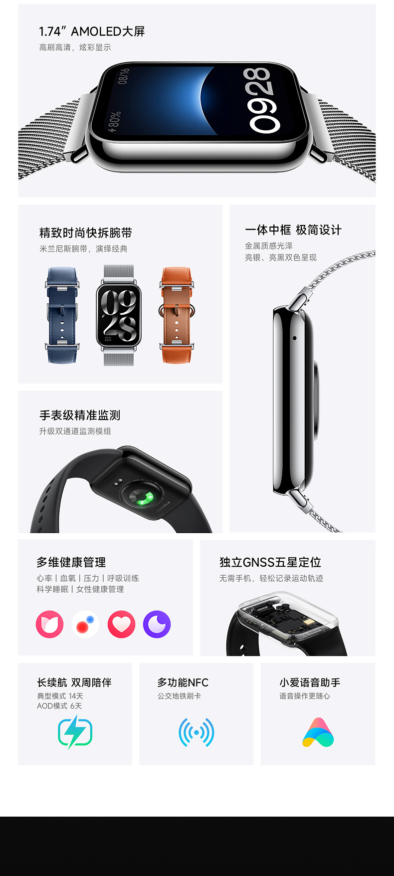 小米手环8pro大屏血氧心率睡眠智能手表男女运动健康防水NFC手环