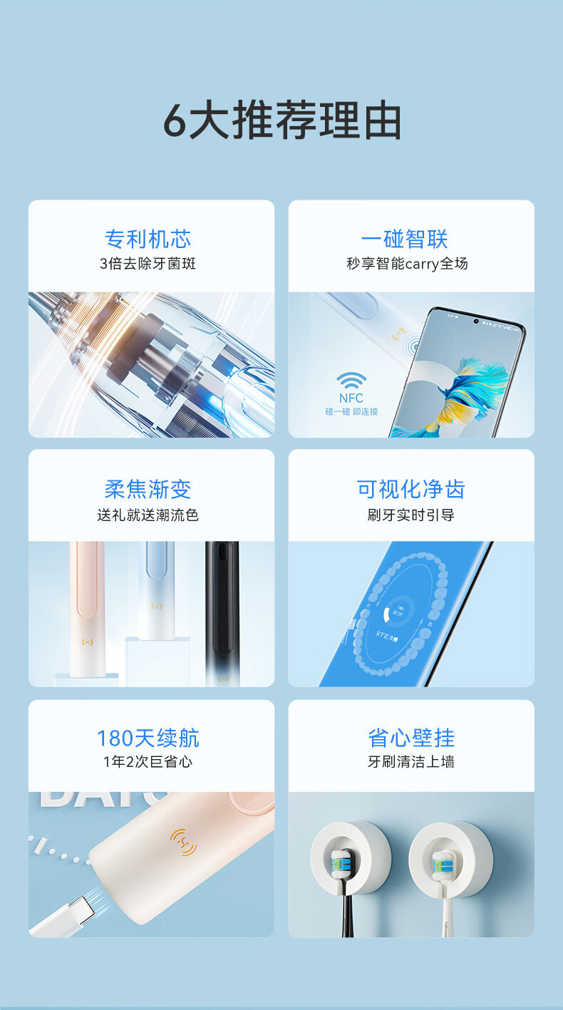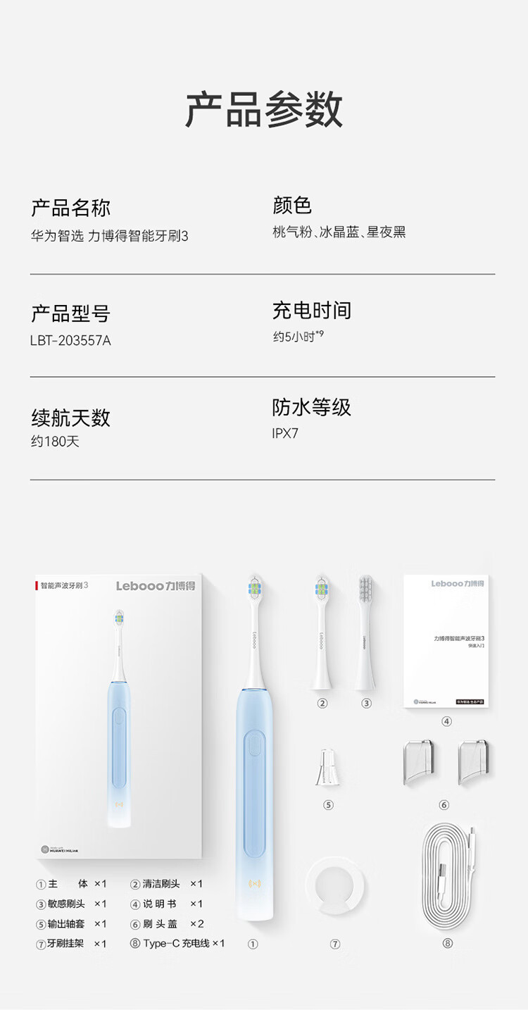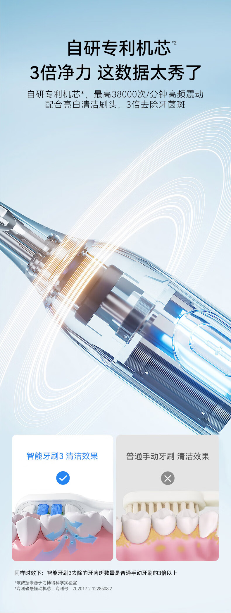 力博得智能牙刷3 全自动声波软毛防水电动牙刷成人情侣套装长续航